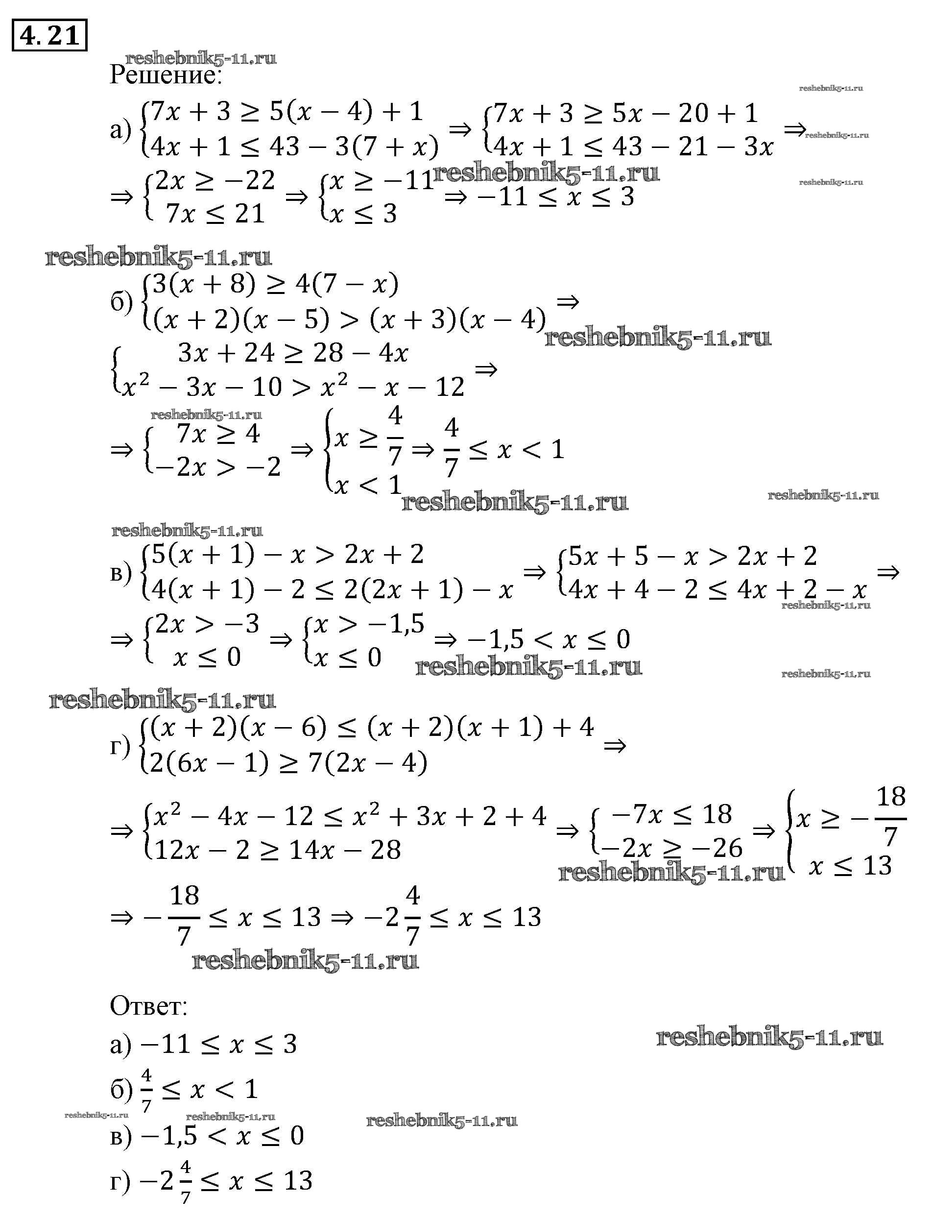 Готовая домашняя работа с ответами по Алгебре за 9 класс Мордкович, Александрова, Мишустина, Тульчинская, Семёнов Задачник Часть 2 Мнемозина 2010 ФГОС - § 4. Системы рациональных неравенств 21