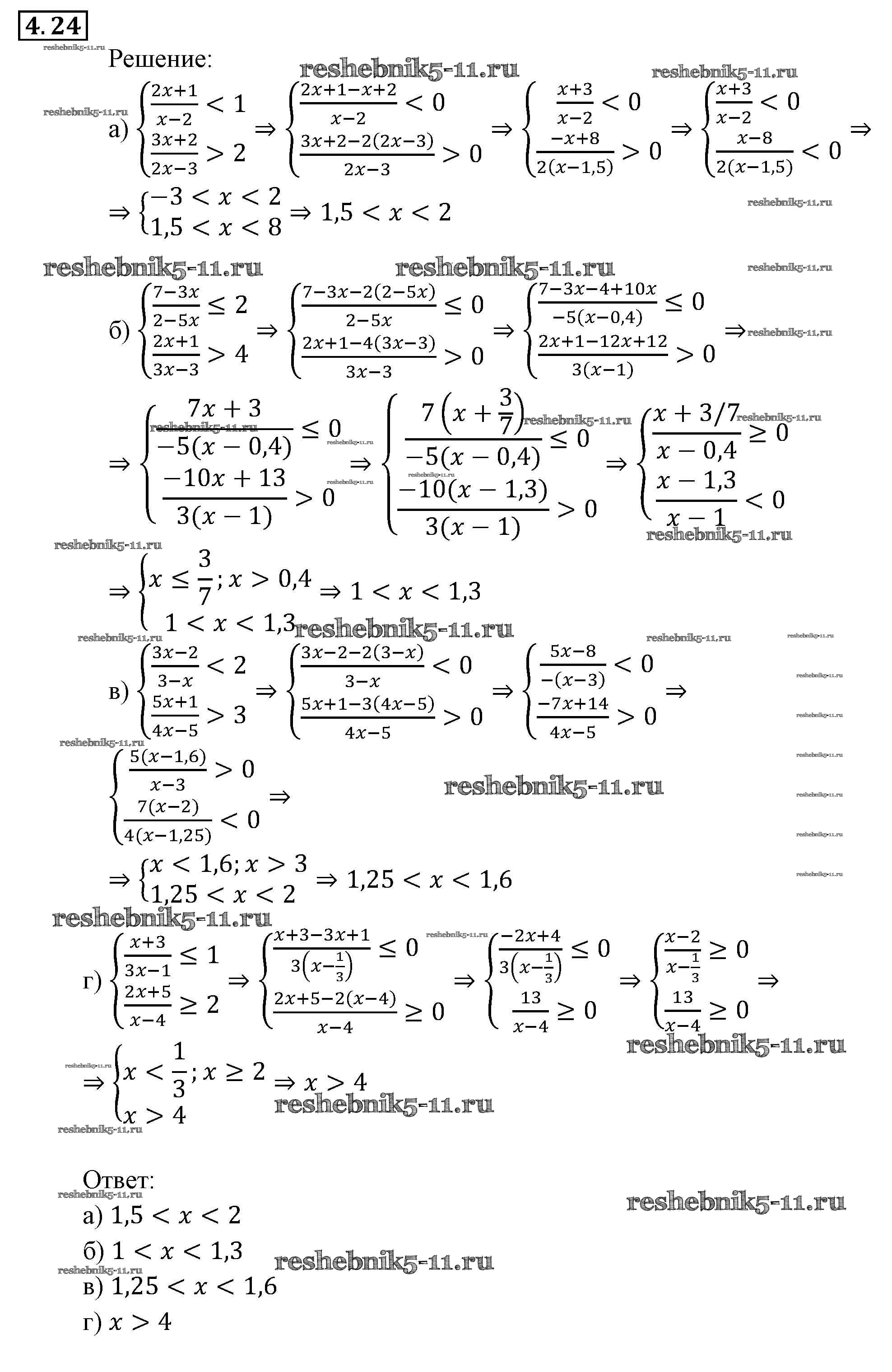 Готовая домашняя работа с ответами по Алгебре за 9 класс Мордкович, Александрова, Мишустина, Тульчинская, Семёнов Задачник Часть 2 Мнемозина 2010 ФГОС - § 4. Системы рациональных неравенств 24