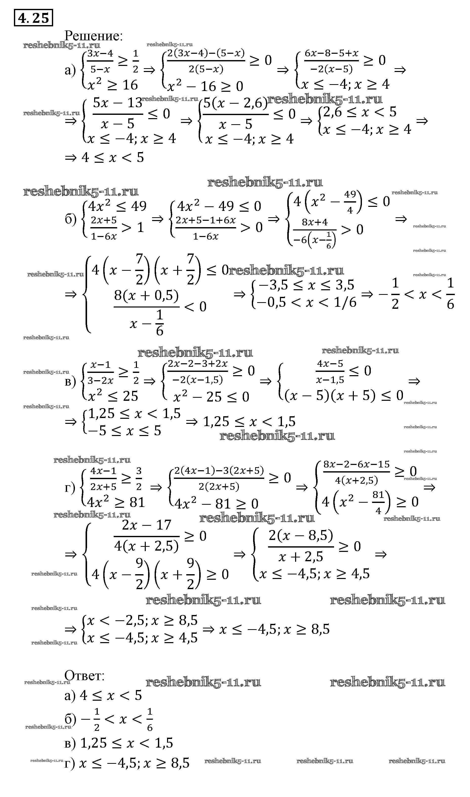 Готовая домашняя работа с ответами по Алгебре за 9 класс Мордкович, Александрова, Мишустина, Тульчинская, Семёнов Задачник Часть 2 Мнемозина 2010 ФГОС - § 4. Системы рациональных неравенств 25