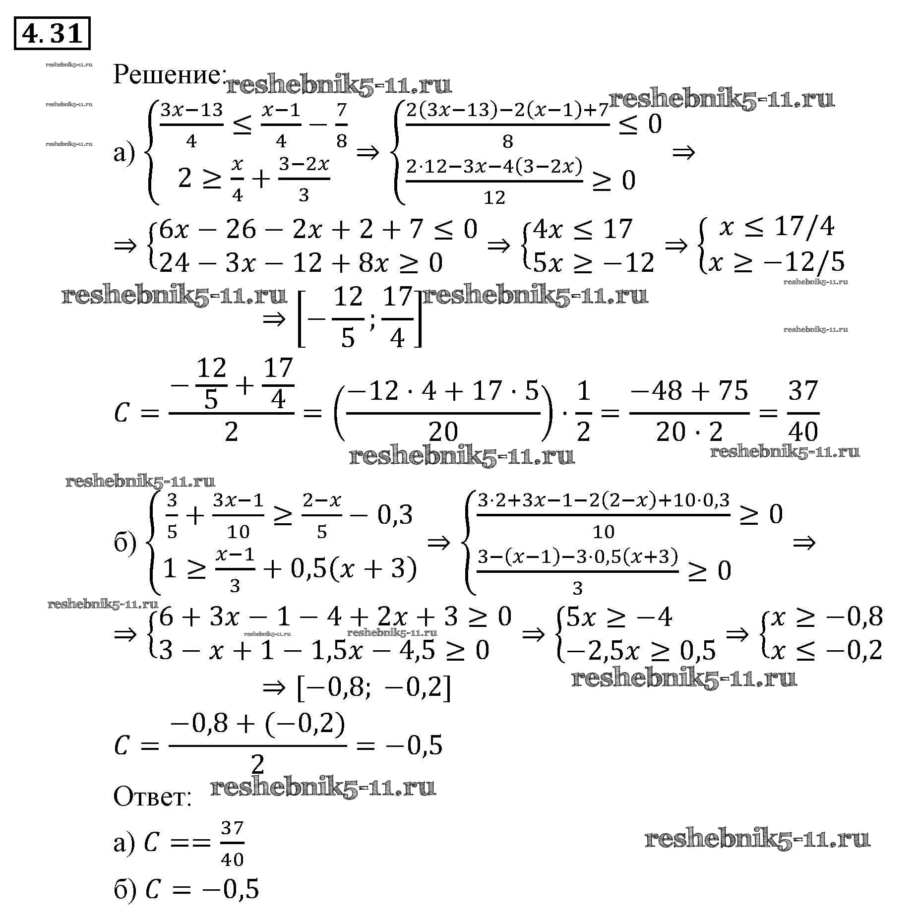 Готовая домашняя работа с ответами по Алгебре за 9 класс Мордкович, Александрова, Мишустина, Тульчинская, Семёнов Задачник Часть 2 Мнемозина 2010 ФГОС - § 4. Системы рациональных неравенств 31