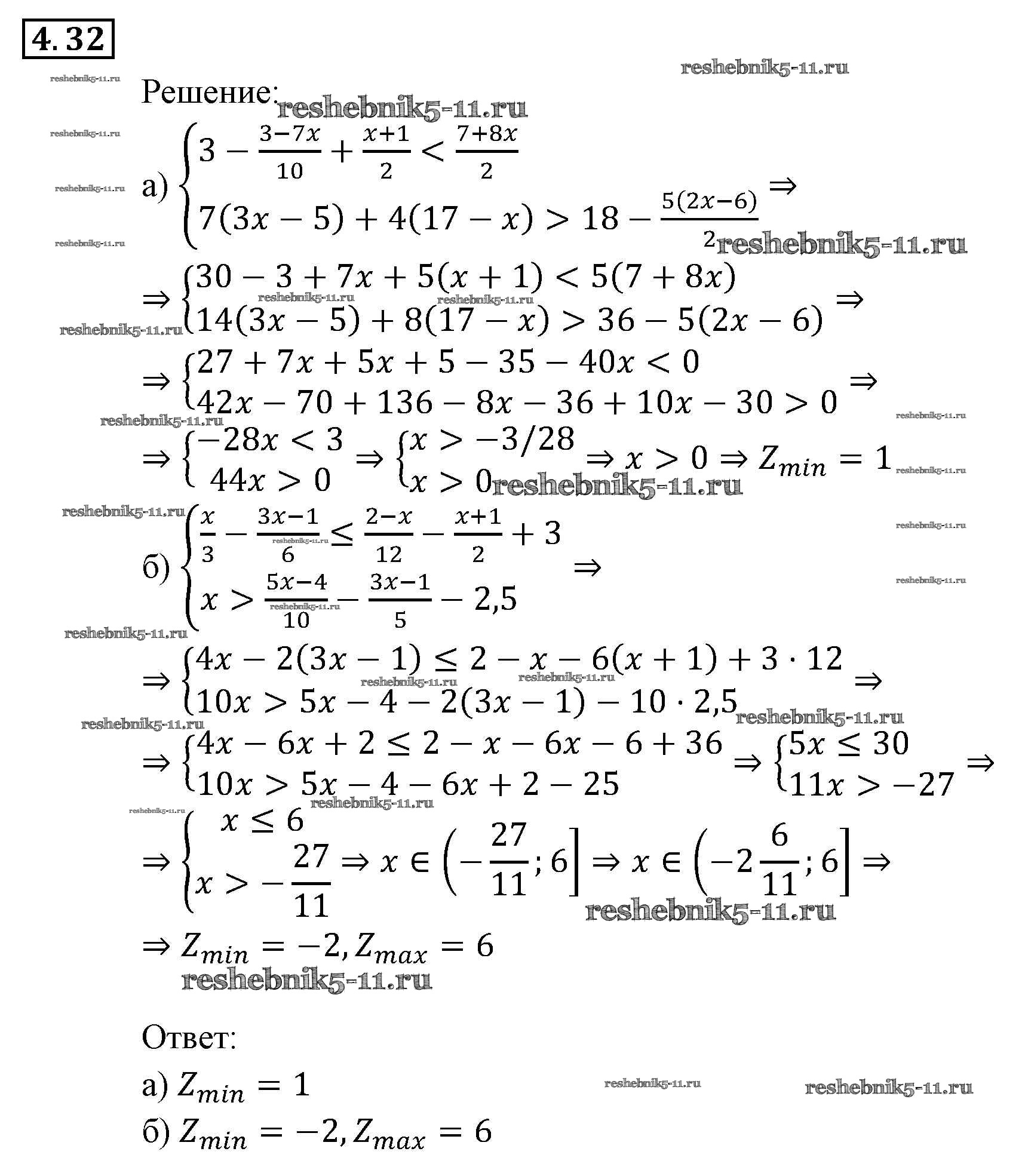 Готовая домашняя работа с ответами по Алгебре за 9 класс Мордкович, Александрова, Мишустина, Тульчинская, Семёнов Задачник Часть 2 Мнемозина 2010 ФГОС - § 4. Системы рациональных неравенств 32