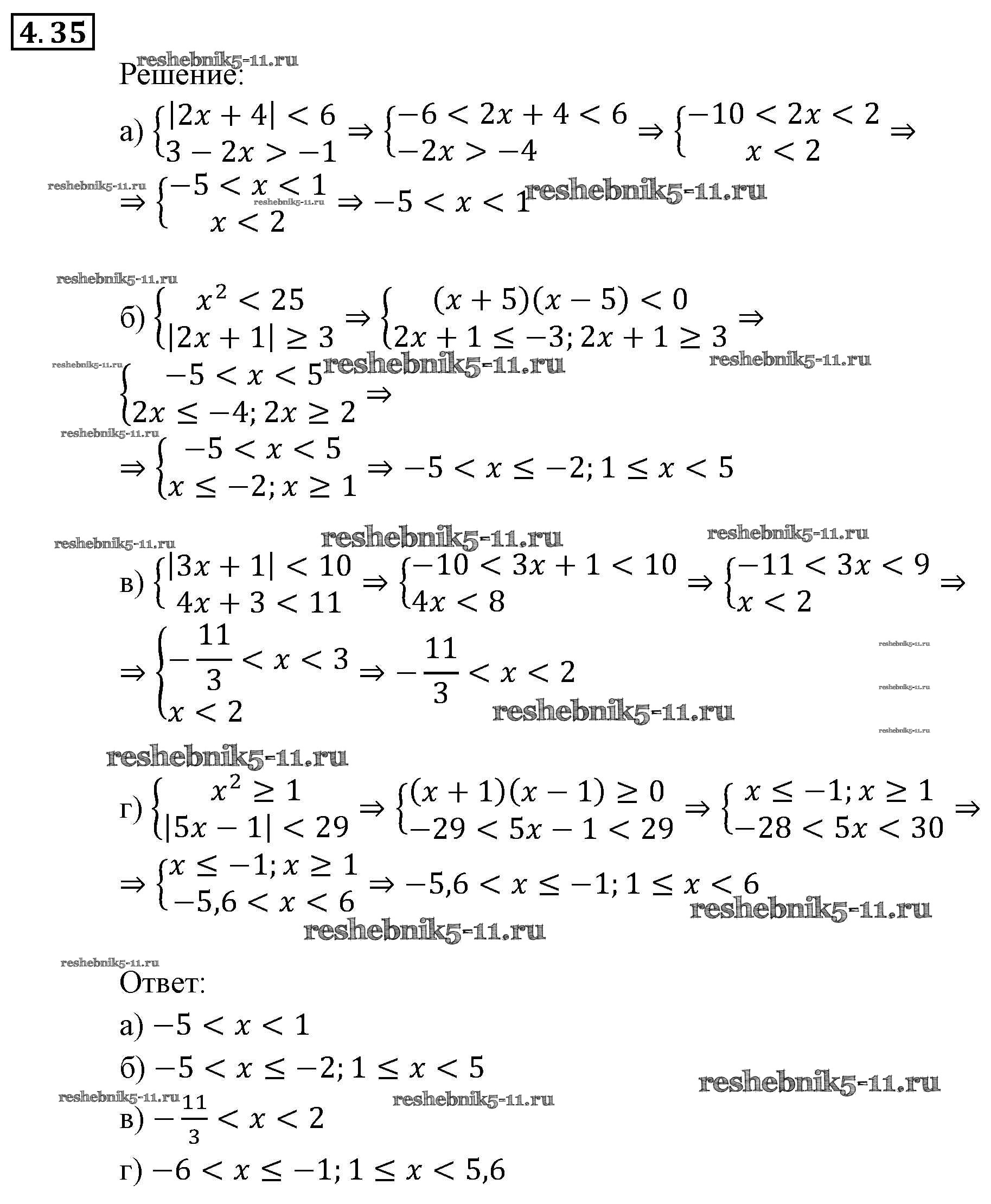 Готовая домашняя работа с ответами по Алгебре за 9 класс Мордкович, Александрова, Мишустина, Тульчинская, Семёнов Задачник Часть 2 Мнемозина 2010 ФГОС - § 4. Системы рациональных неравенств 35