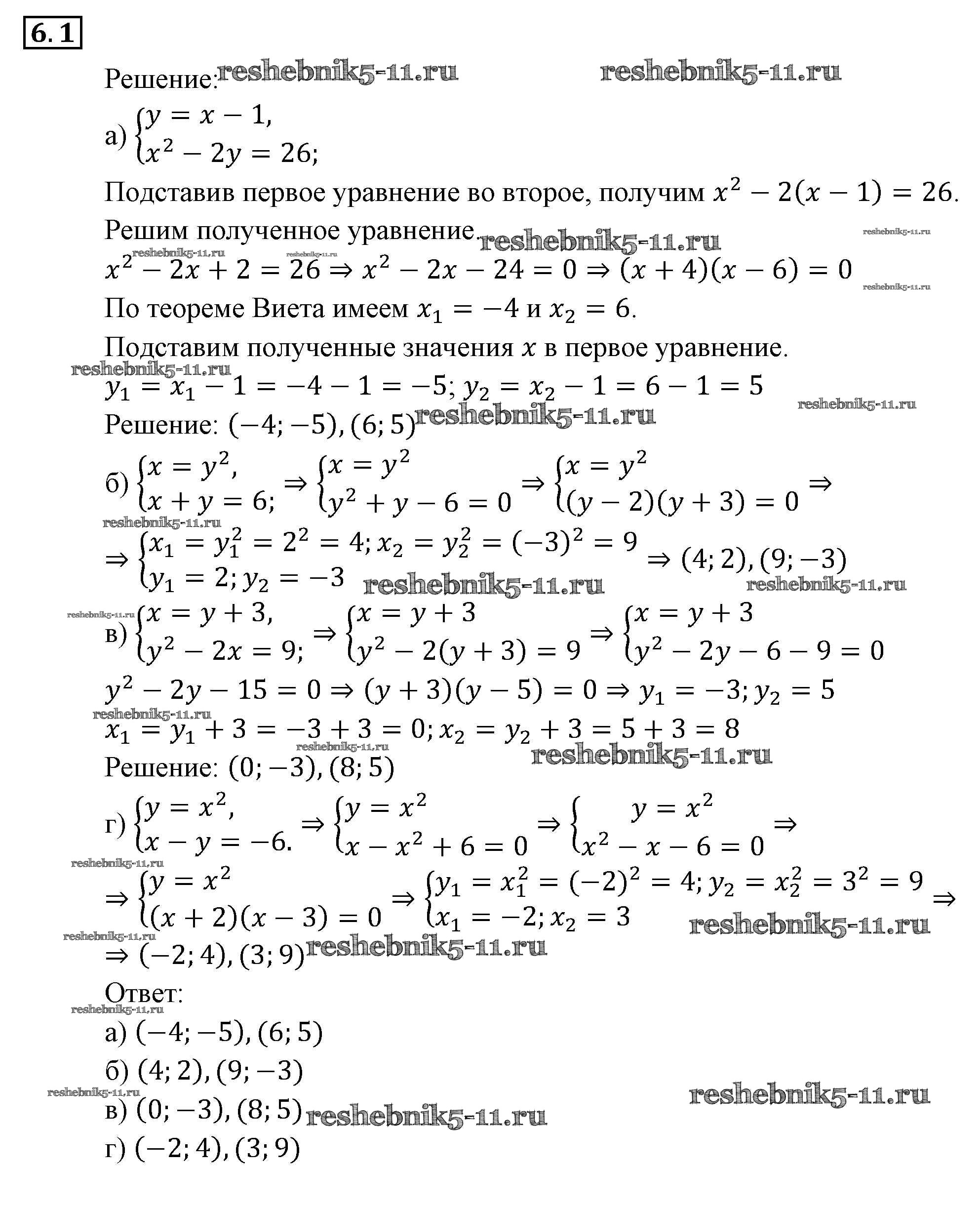 Готовая домашняя работа с ответами по Алгебре за 9 класс Мордкович, Александрова, Мишустина, Тульчинская, Семёнов Задачник Часть 2 Мнемозина 2010 ФГОС - § 6. Методы решения систем уравнений 1