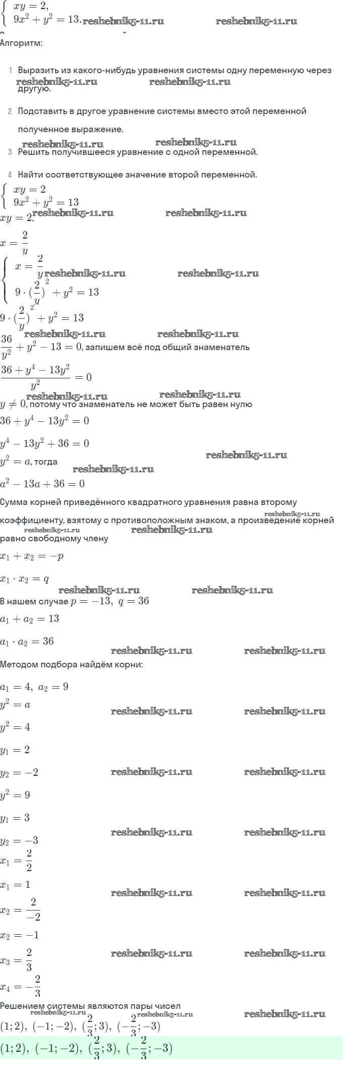 Готовая домашняя работа с ответами по Алгебре за 9 класс Мордкович, Александрова, Мишустина, Тульчинская, Семёнов Задачник Часть 2 Мнемозина 2010 ФГОС - § 6. Методы решения систем уравнений 6.13