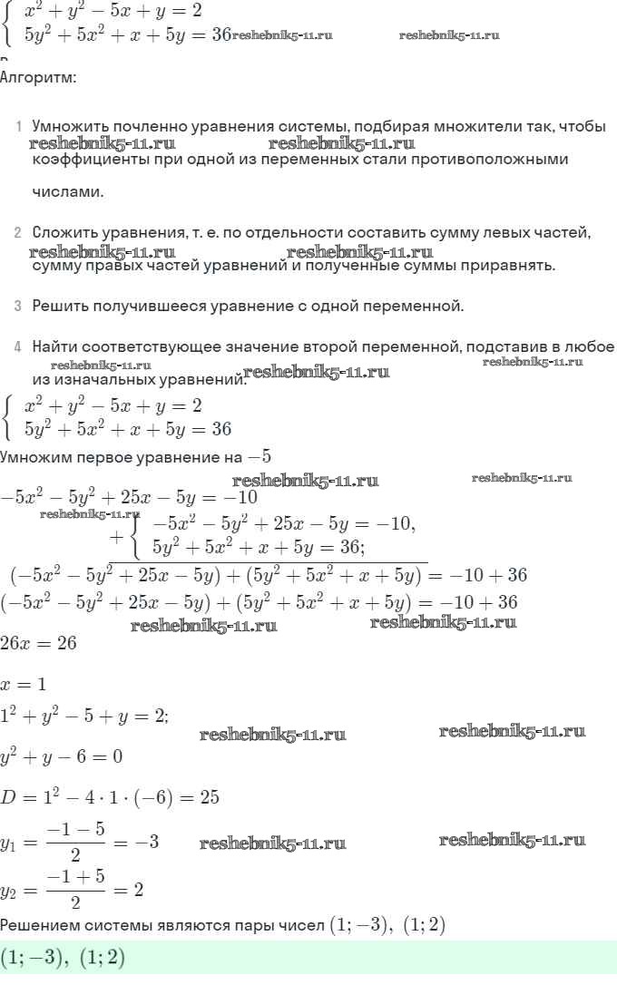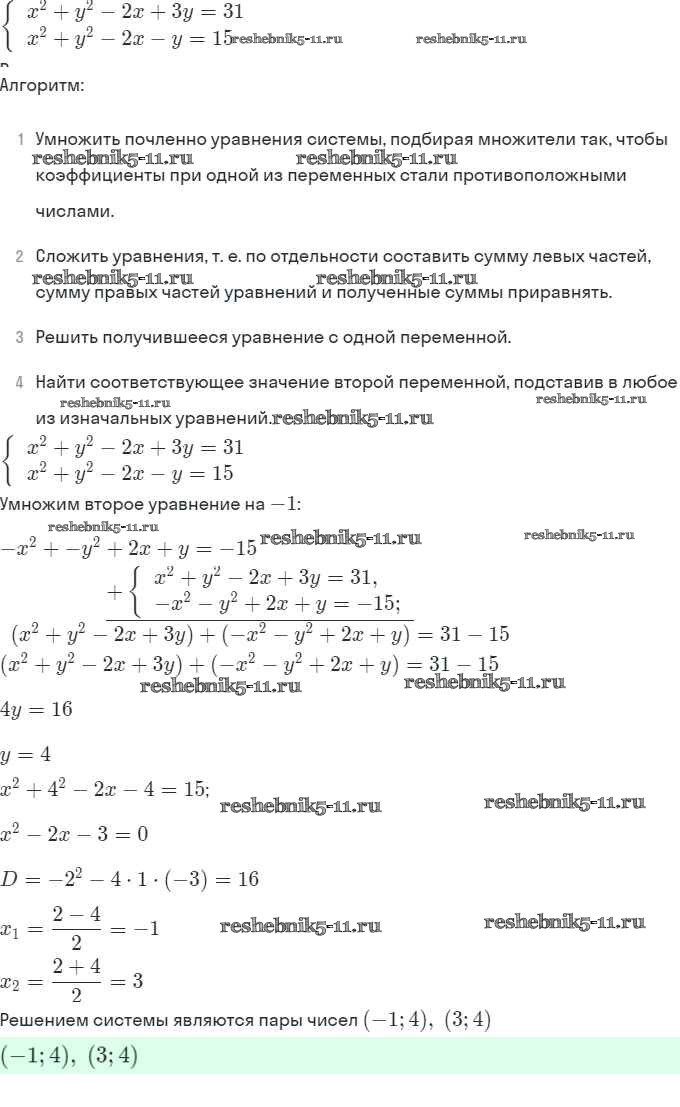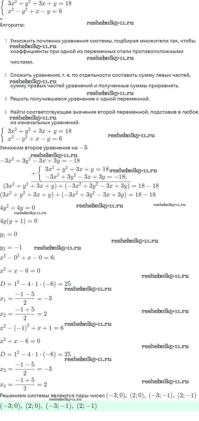 Готовая домашняя работа с ответами по Алгебре за 9 класс Мордкович, Александрова, Мишустина, Тульчинская, Семёнов Задачник Часть 2 Мнемозина 2010 ФГОС - § 6. Методы решения систем уравнений 6.15