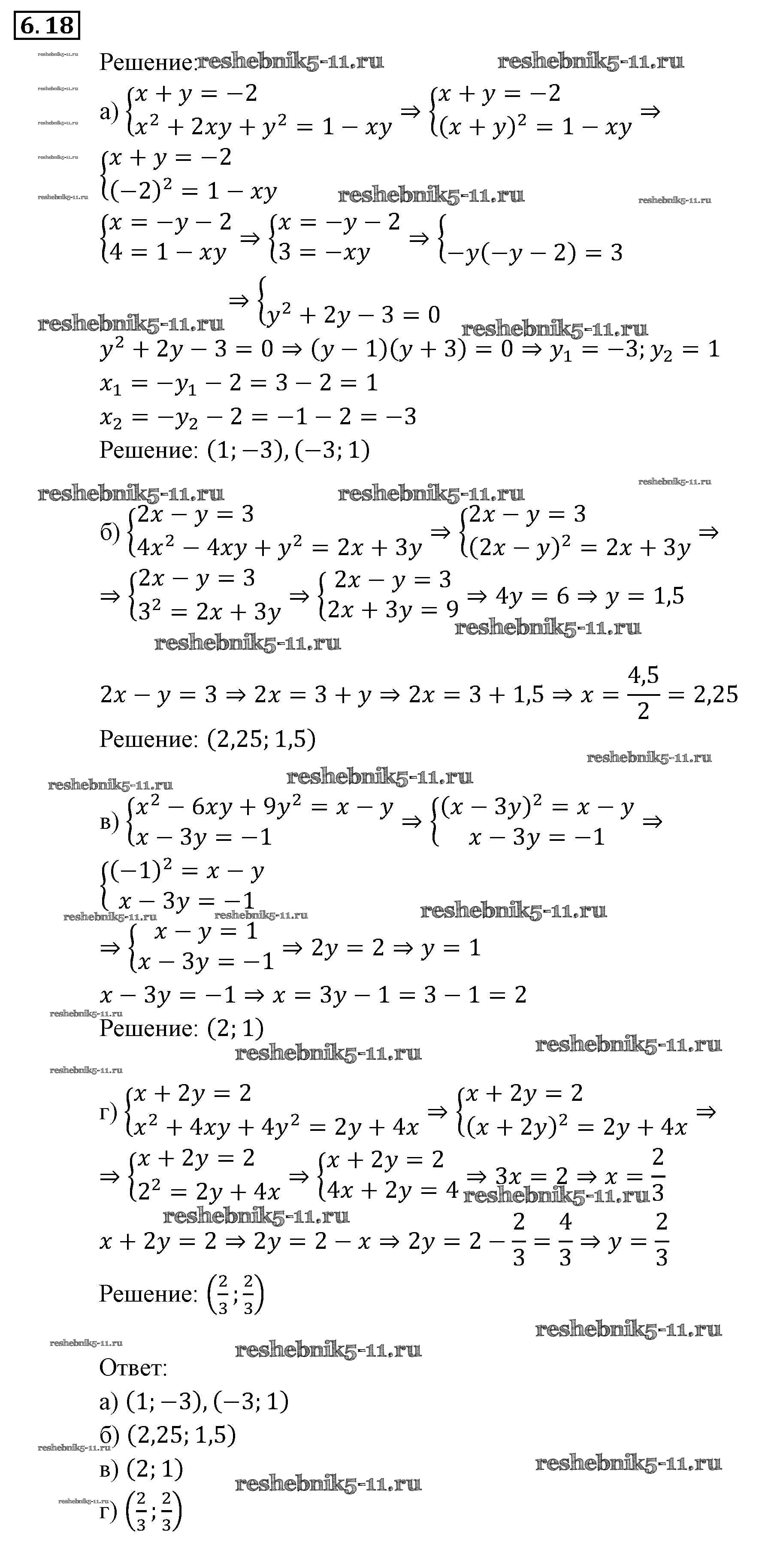 Готовая домашняя работа с ответами по Алгебре за 9 класс Мордкович, Александрова, Мишустина, Тульчинская, Семёнов Задачник Часть 2 Мнемозина 2010 ФГОС - § 6. Методы решения систем уравнений 18