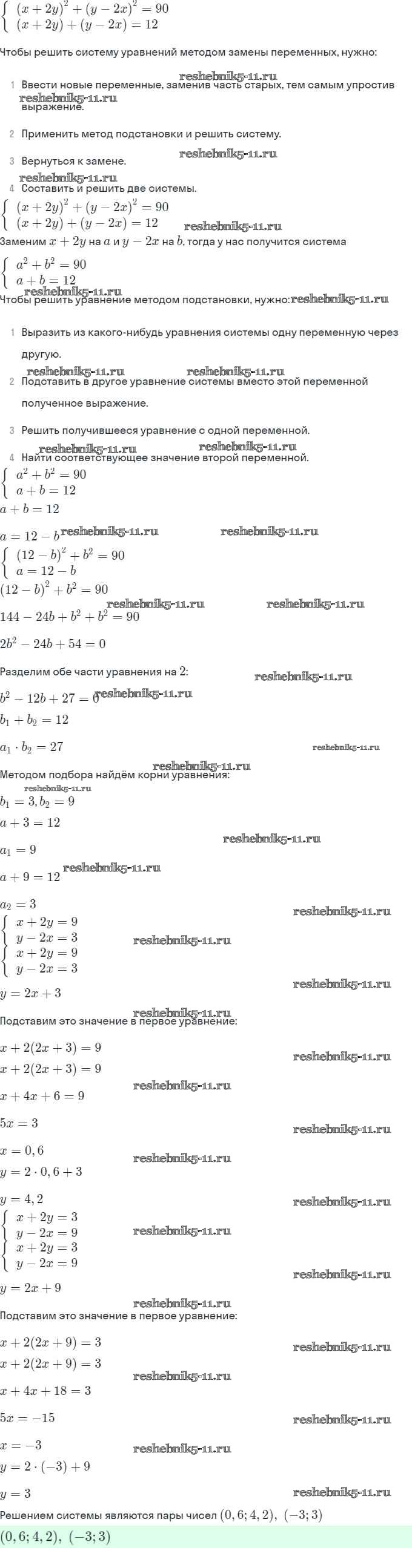 Готовая домашняя работа с ответами по Алгебре за 9 класс Мордкович, Александрова, Мишустина, Тульчинская, Семёнов Задачник Часть 2 Мнемозина 2010 ФГОС - § 6. Методы решения систем уравнений 6.21