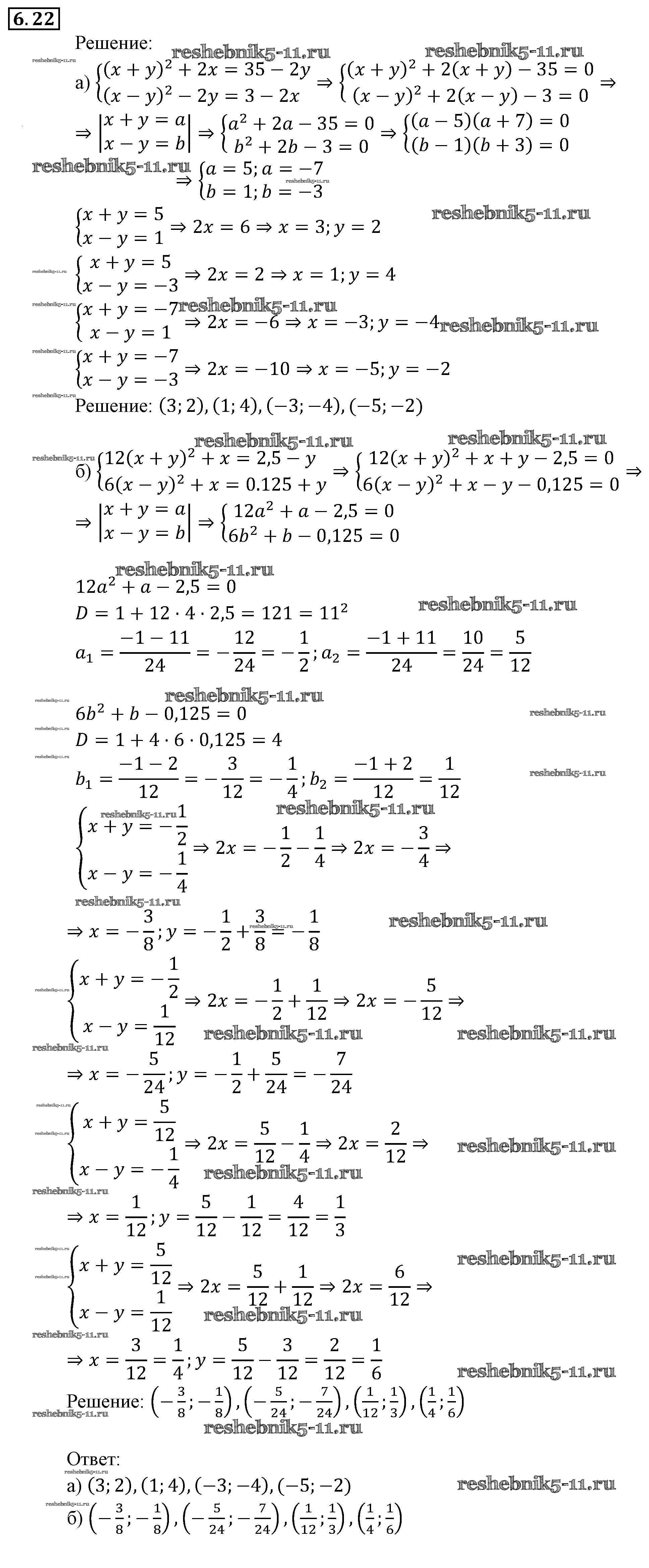 Готовая домашняя работа с ответами по Алгебре за 9 класс Мордкович, Александрова, Мишустина, Тульчинская, Семёнов Задачник Часть 2 Мнемозина 2010 ФГОС - § 6. Методы решения систем уравнений 22
