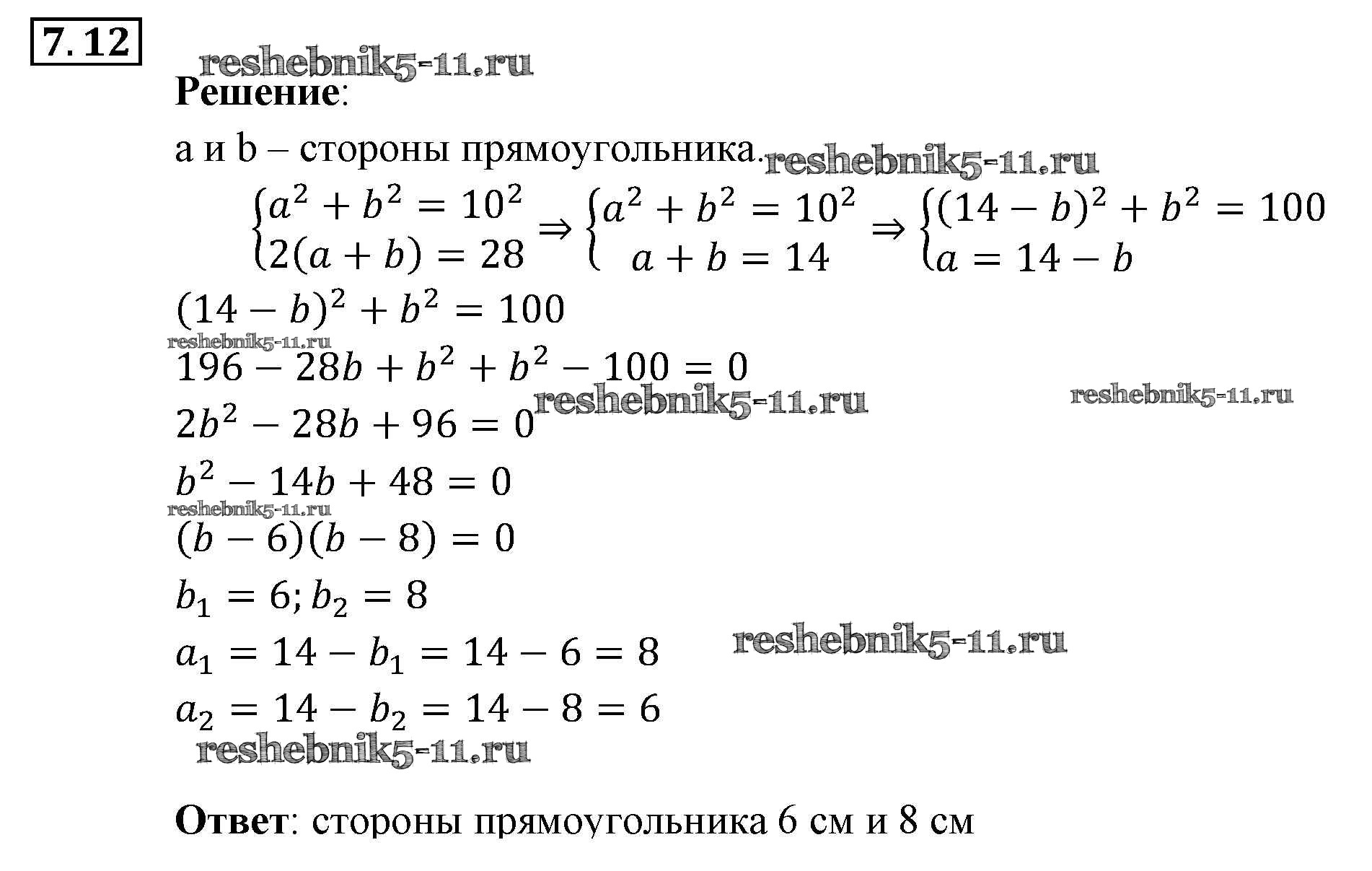 Готовая домашняя работа с ответами по Алгебре за 9 класс Мордкович, Александрова, Мишустина, Тульчинская, Семёнов Задачник Часть 2 Мнемозина 2010 ФГОС - § 7. Системы уравнений как математические модели реальных ситуаций 12