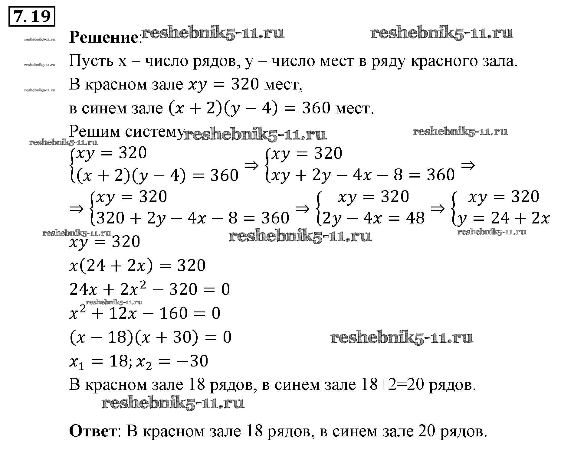 Готовая домашняя работа с ответами по Алгебре за 9 класс Мордкович, Александрова, Мишустина, Тульчинская, Семёнов Задачник Часть 2 Мнемозина 2010 ФГОС - § 7. Системы уравнений как математические модели реальных ситуаций 19