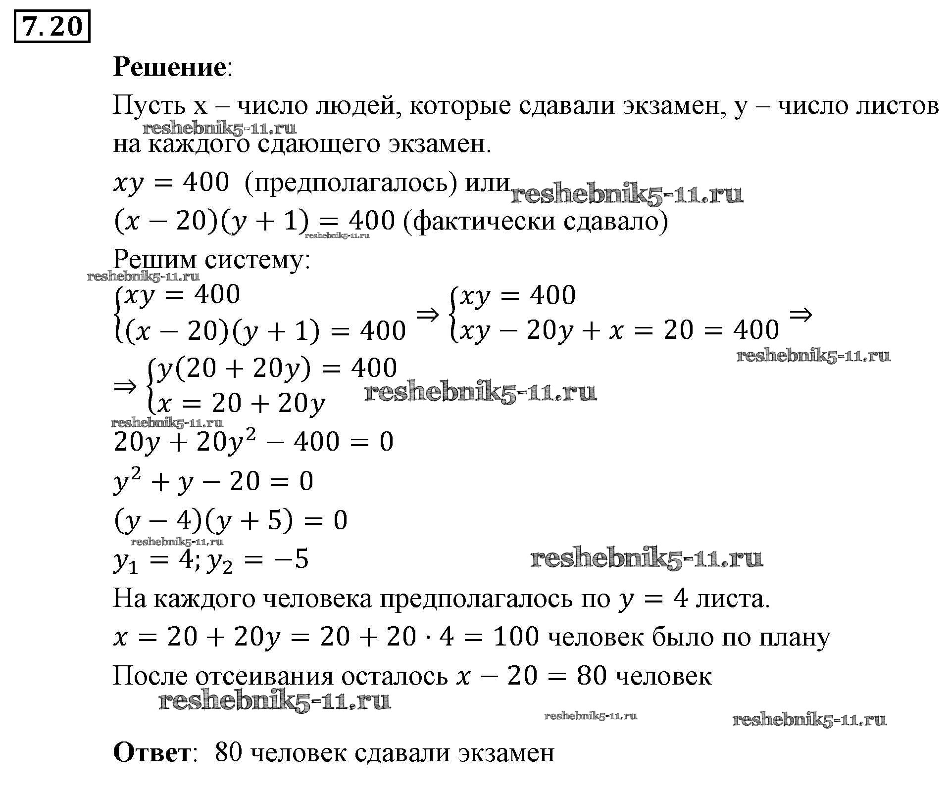 Готовая домашняя работа с ответами по Алгебре за 9 класс Мордкович, Александрова, Мишустина, Тульчинская, Семёнов Задачник Часть 2 Мнемозина 2010 ФГОС - § 7. Системы уравнений как математические модели реальных ситуаций 20