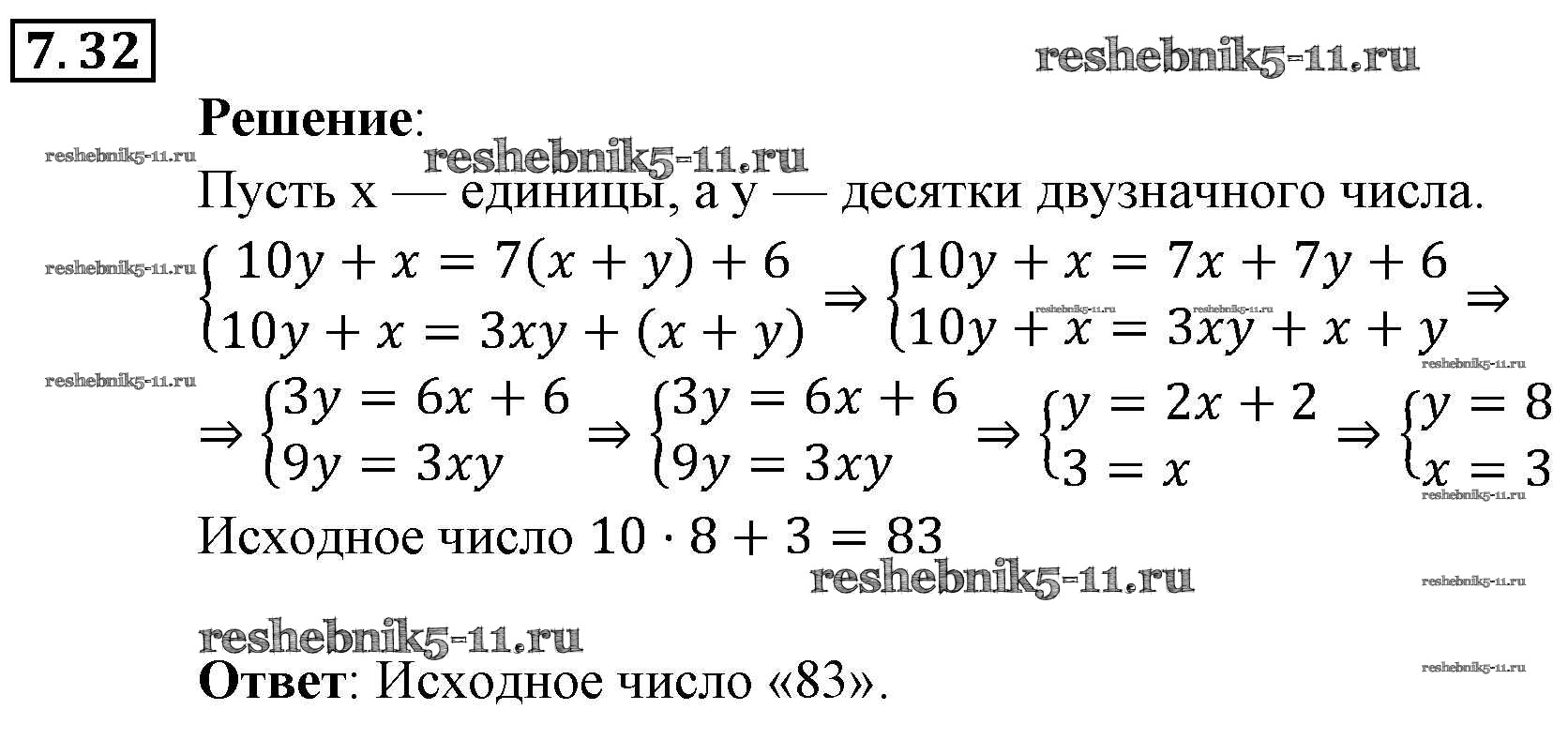 Готовая домашняя работа с ответами по Алгебре за 9 класс Мордкович, Александрова, Мишустина, Тульчинская, Семёнов Задачник Часть 2 Мнемозина 2010 ФГОС - § 7. Системы уравнений как математические модели реальных ситуаций 32