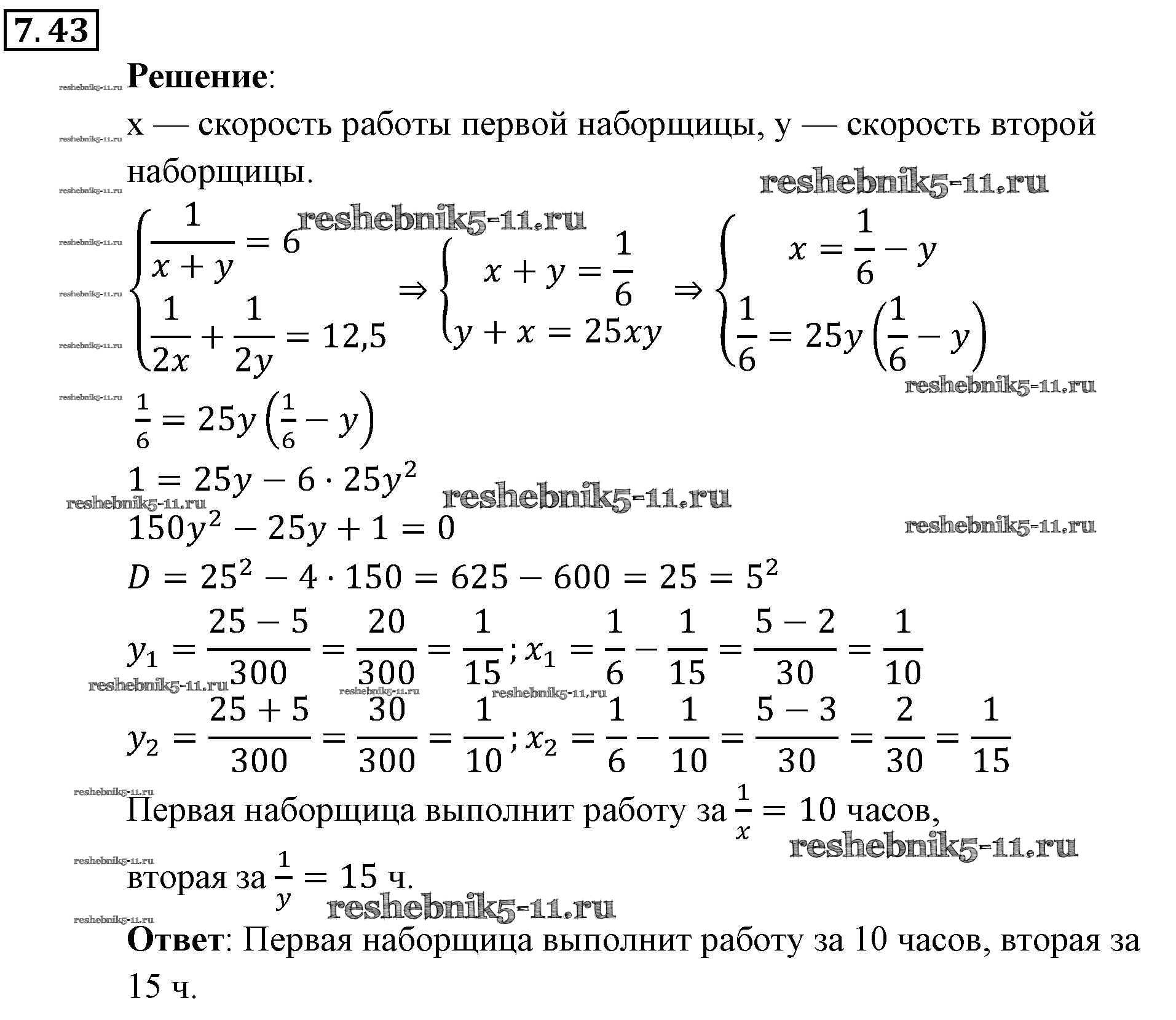Готовая домашняя работа с ответами по Алгебре за 9 класс Мордкович, Александрова, Мишустина, Тульчинская, Семёнов Задачник Часть 2 Мнемозина 2010 ФГОС - § 7. Системы уравнений как математические модели реальных ситуаций 43