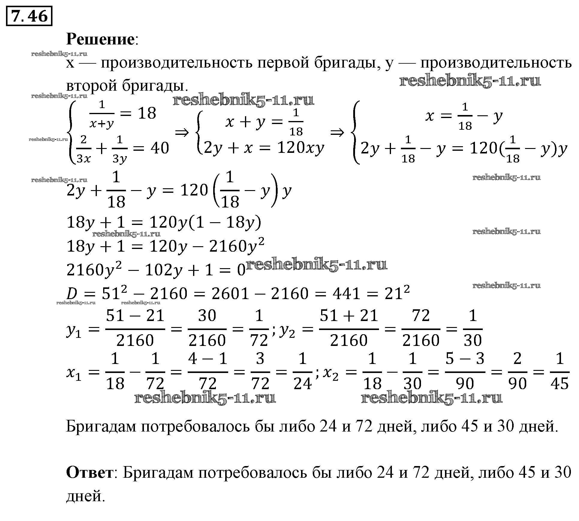Готовая домашняя работа с ответами по Алгебре за 9 класс Мордкович, Александрова, Мишустина, Тульчинская, Семёнов Задачник Часть 2 Мнемозина 2010 ФГОС - § 7. Системы уравнений как математические модели реальных ситуаций 46