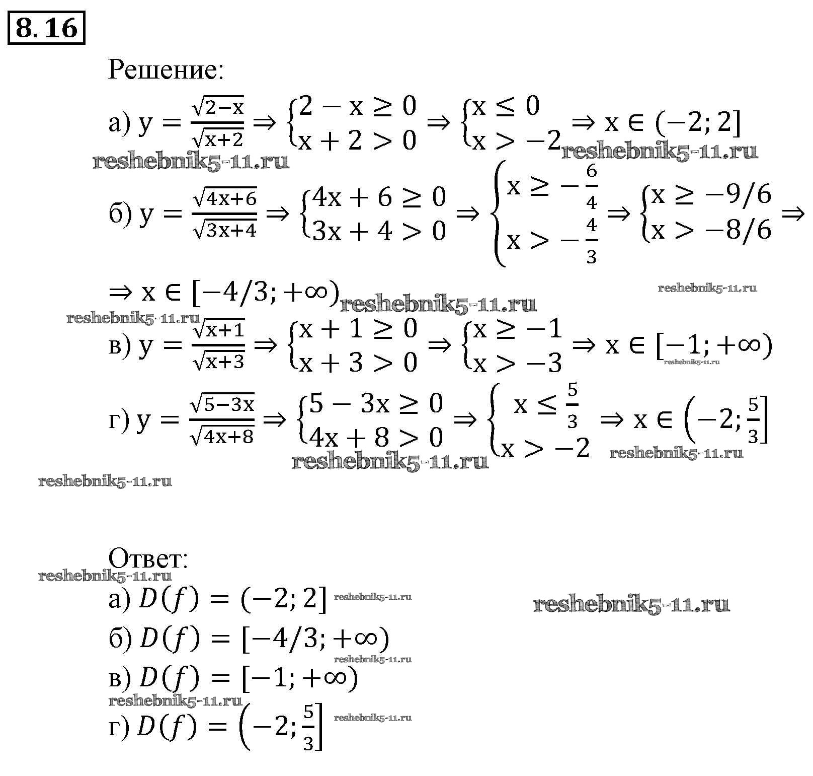 Готовая домашняя работа с ответами по Алгебре за 9 класс Мордкович, Александрова, Мишустина, Тульчинская, Семёнов Задачник Часть 2 Мнемозина 2010 ФГОС - § 8. Определение числовой функции. Область определения, область значений функции 16