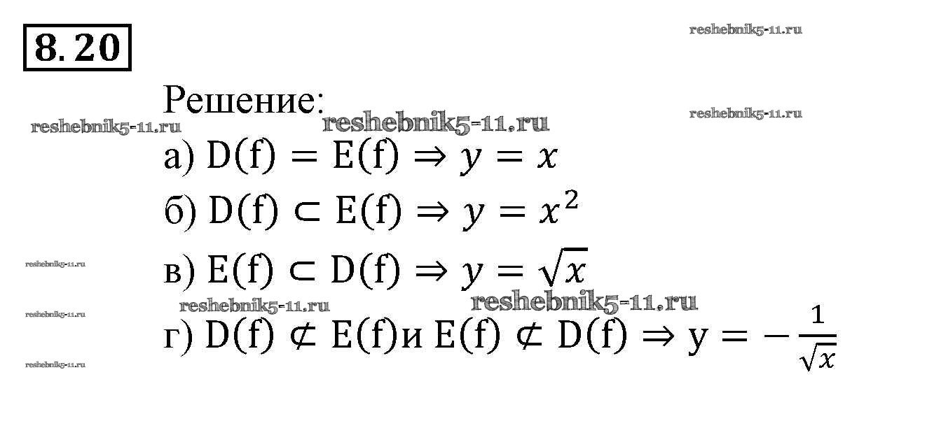 Готовая домашняя работа с ответами по Алгебре за 9 класс Мордкович, Александрова, Мишустина, Тульчинская, Семёнов Задачник Часть 2 Мнемозина 2010 ФГОС - § 8. Определение числовой функции. Область определения, область значений функции 20
