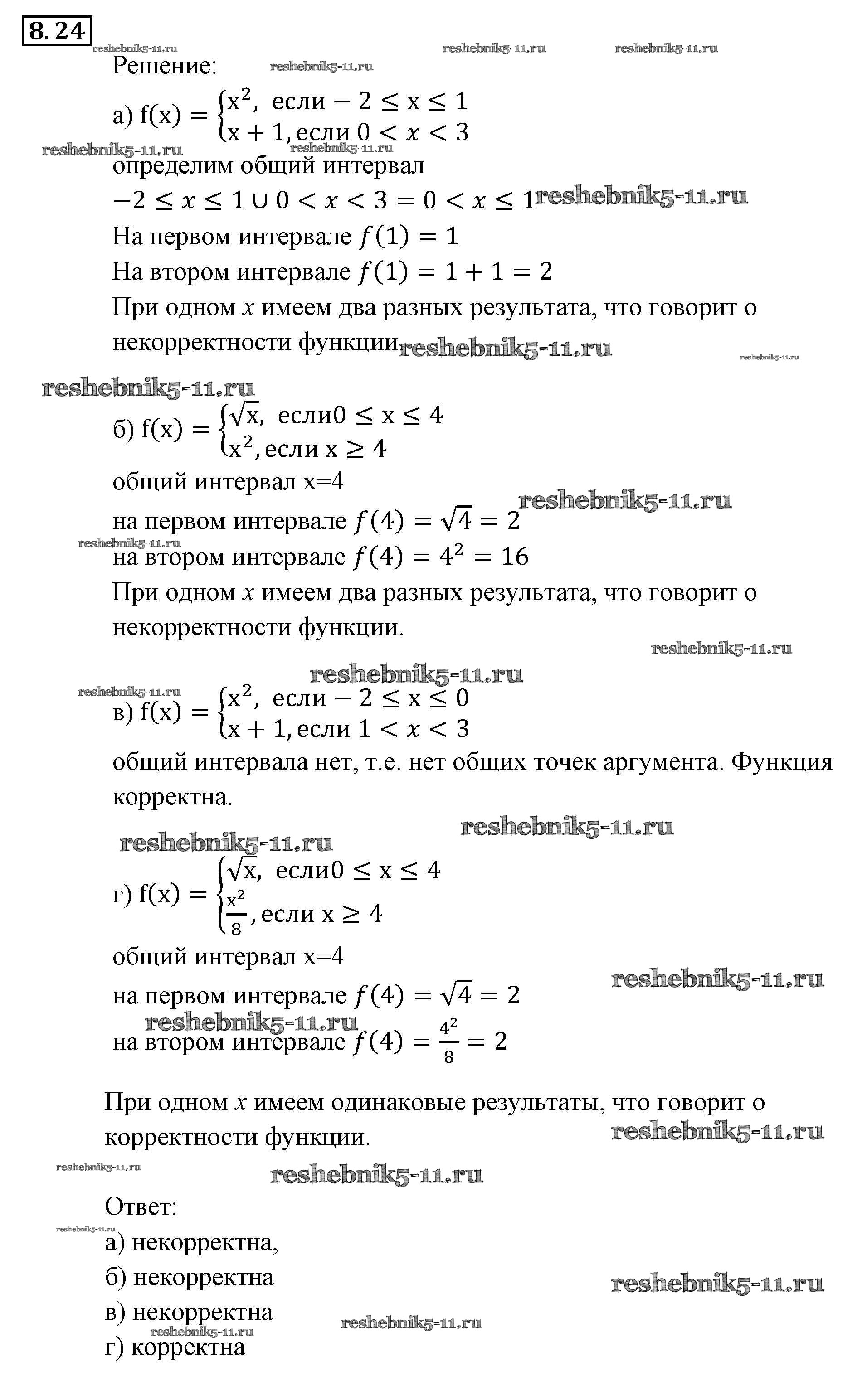 Готовая домашняя работа с ответами по Алгебре за 9 класс Мордкович, Александрова, Мишустина, Тульчинская, Семёнов Задачник Часть 2 Мнемозина 2010 ФГОС - § 8. Определение числовой функции. Область определения, область значений функции 24