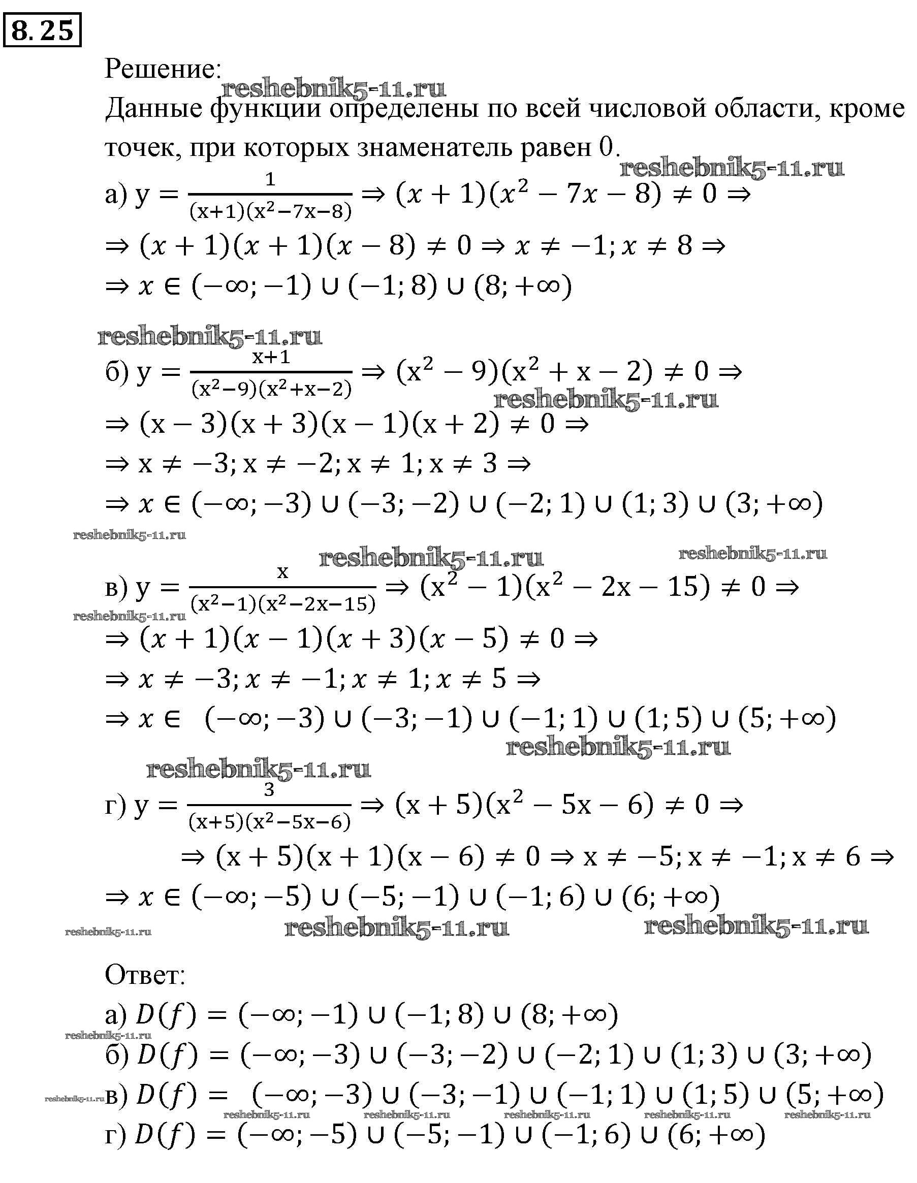 Готовая домашняя работа с ответами по Алгебре за 9 класс Мордкович, Александрова, Мишустина, Тульчинская, Семёнов Задачник Часть 2 Мнемозина 2010 ФГОС - § 8. Определение числовой функции. Область определения, область значений функции 25