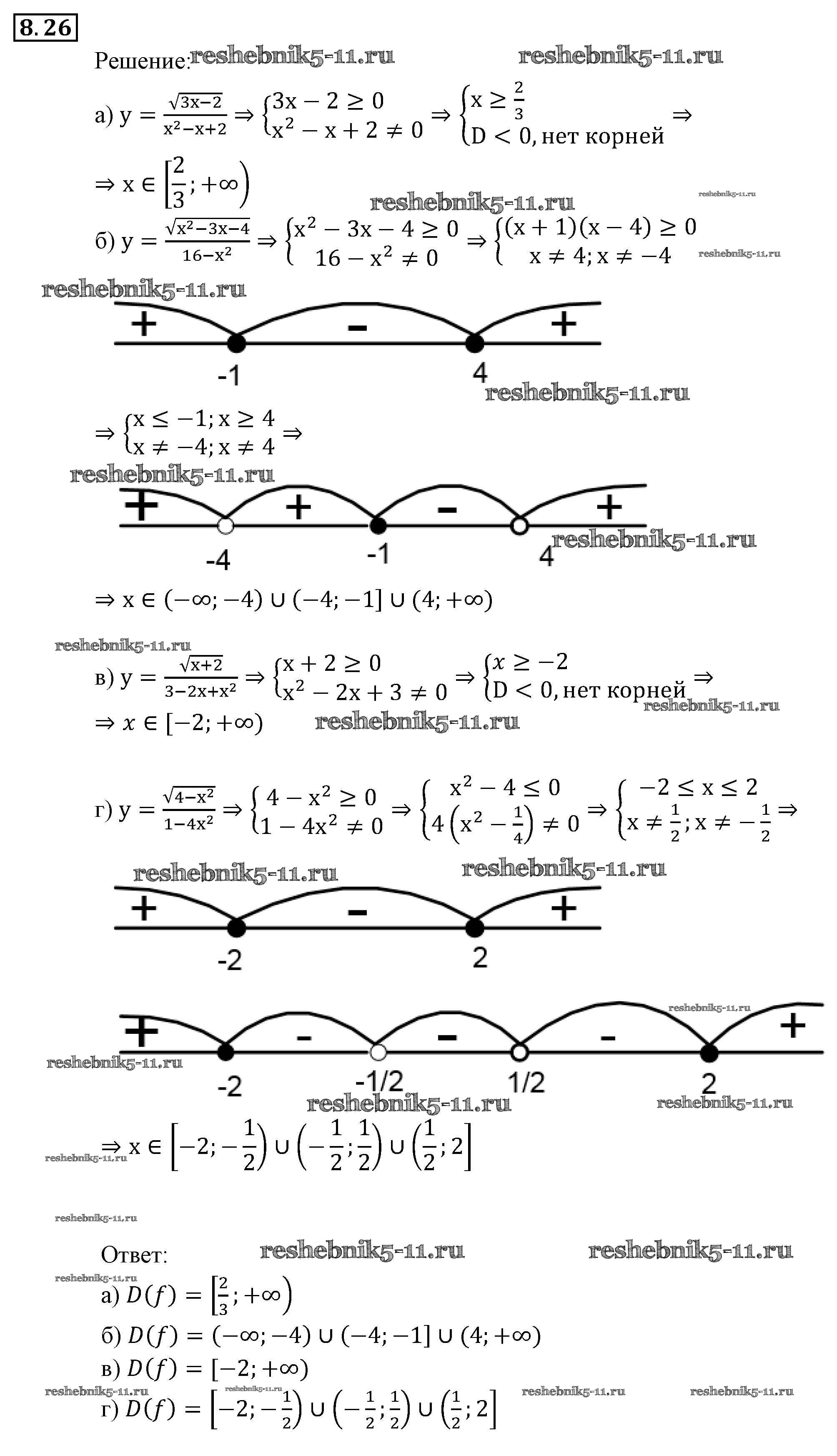 Готовая домашняя работа с ответами по Алгебре за 9 класс Мордкович, Александрова, Мишустина, Тульчинская, Семёнов Задачник Часть 2 Мнемозина 2010 ФГОС - § 8. Определение числовой функции. Область определения, область значений функции 26
