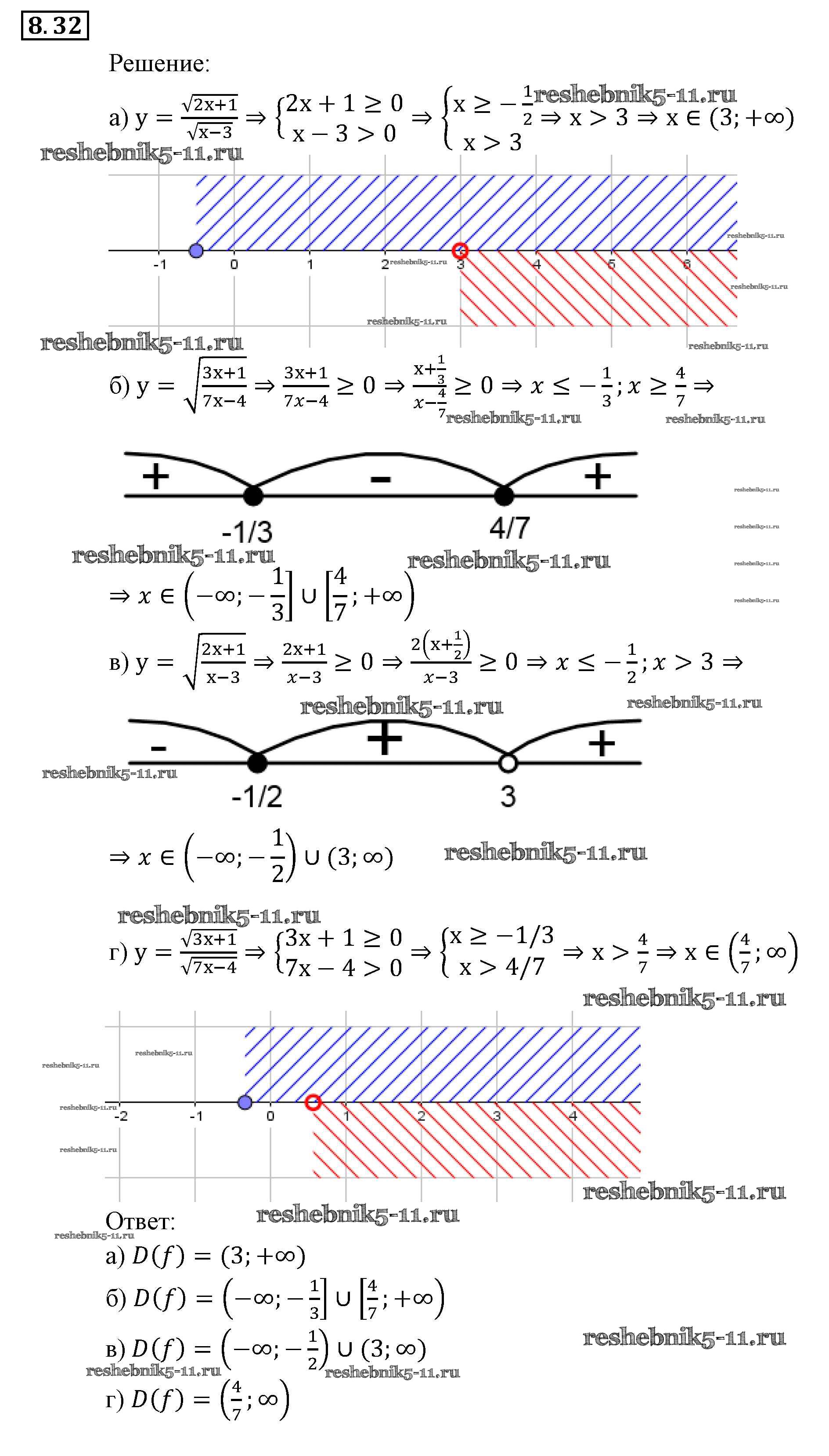 Готовая домашняя работа с ответами по Алгебре за 9 класс Мордкович, Александрова, Мишустина, Тульчинская, Семёнов Задачник Часть 2 Мнемозина 2010 ФГОС - § 8. Определение числовой функции. Область определения, область значений функции 32