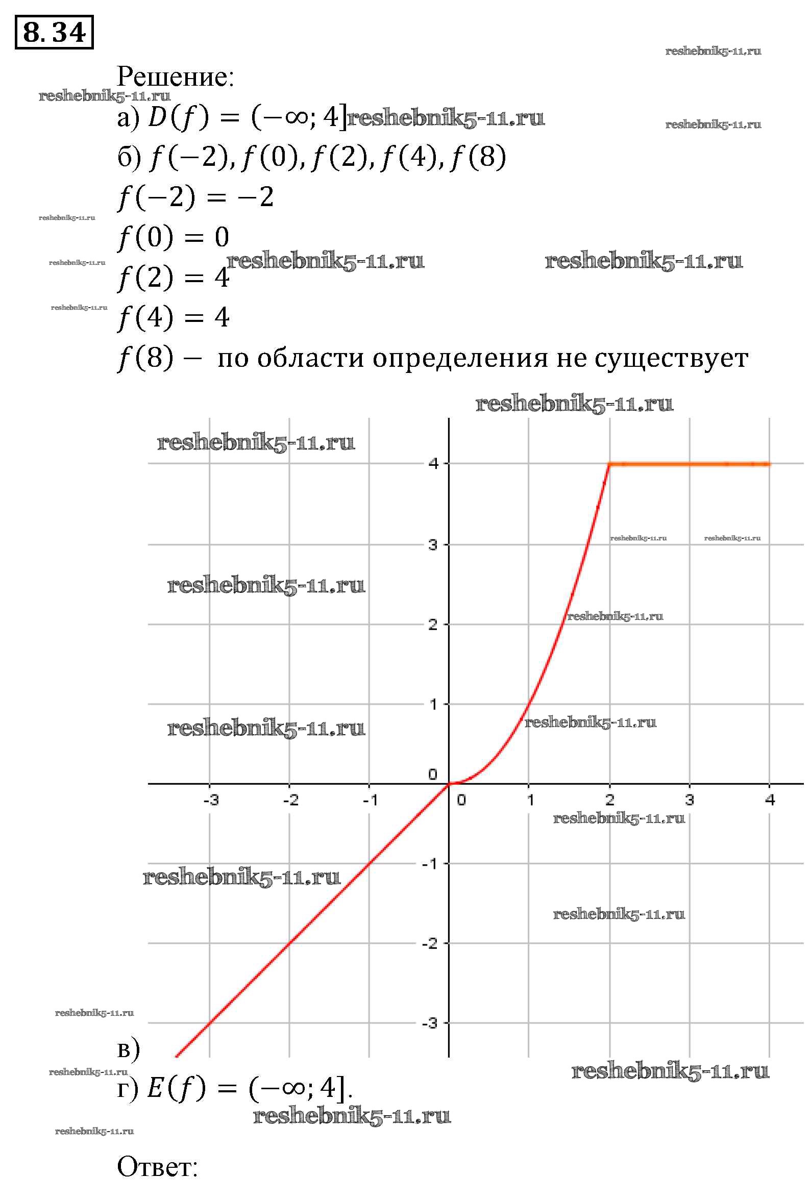 Готовая домашняя работа с ответами по Алгебре за 9 класс Мордкович, Александрова, Мишустина, Тульчинская, Семёнов Задачник Часть 2 Мнемозина 2010 ФГОС - § 8. Определение числовой функции. Область определения, область значений функции 34