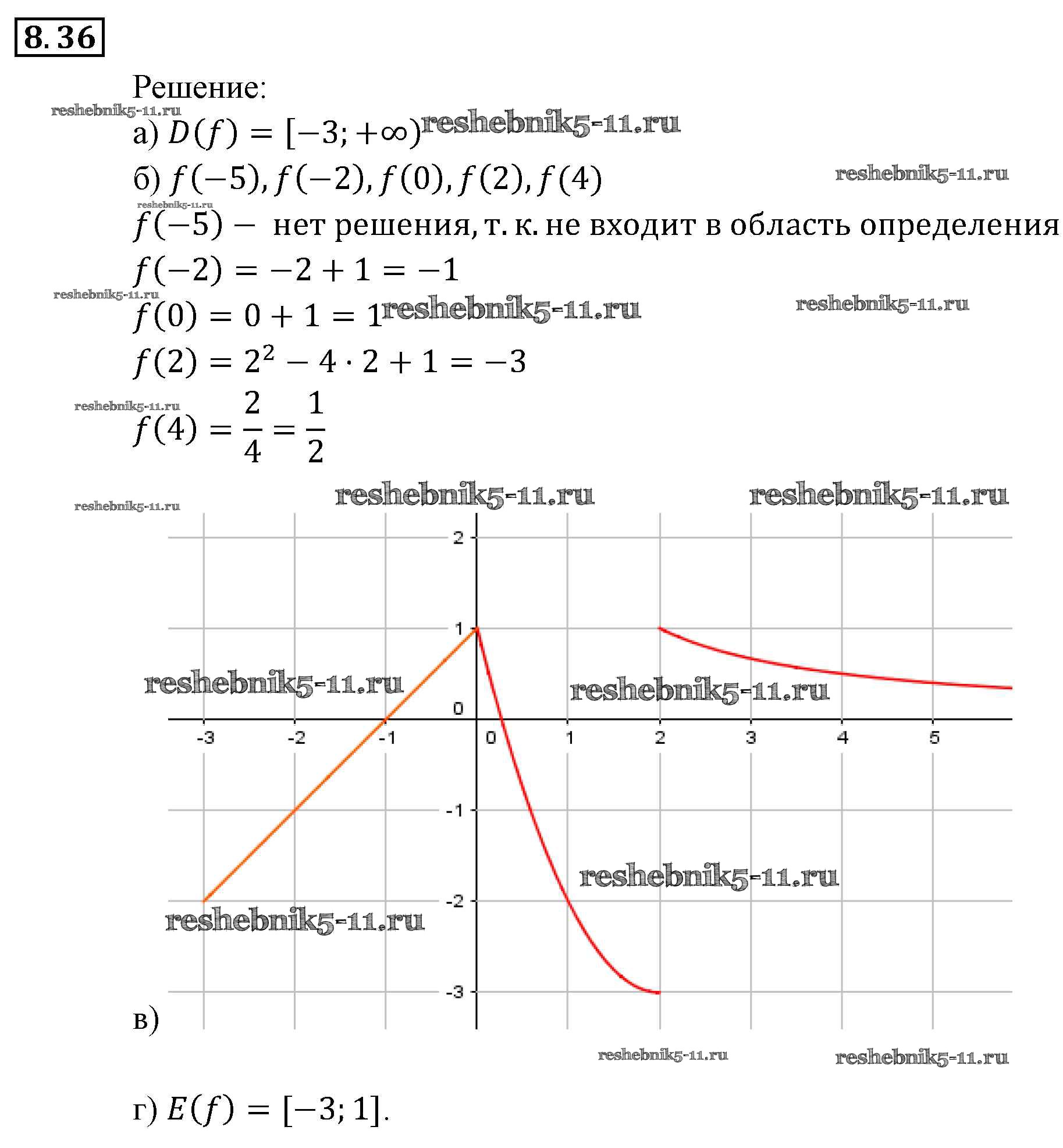Готовая домашняя работа с ответами по Алгебре за 9 класс Мордкович, Александрова, Мишустина, Тульчинская, Семёнов Задачник Часть 2 Мнемозина 2010 ФГОС - § 8. Определение числовой функции. Область определения, область значений функции 36