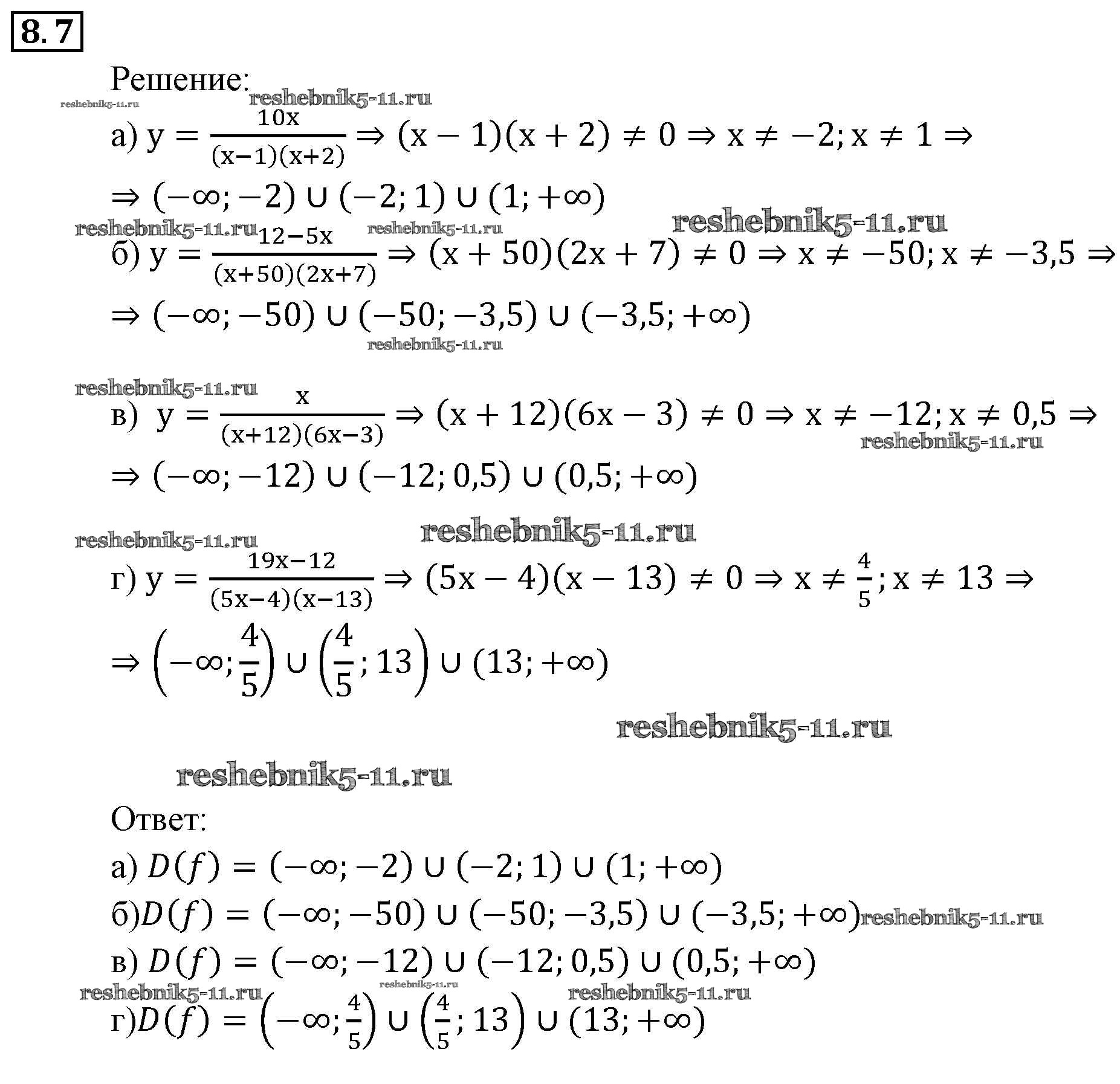 Готовая домашняя работа с ответами по Алгебре за 9 класс Мордкович, Александрова, Мишустина, Тульчинская, Семёнов Задачник Часть 2 Мнемозина 2010 ФГОС - § 8. Определение числовой функции. Область определения, область значений функции 7