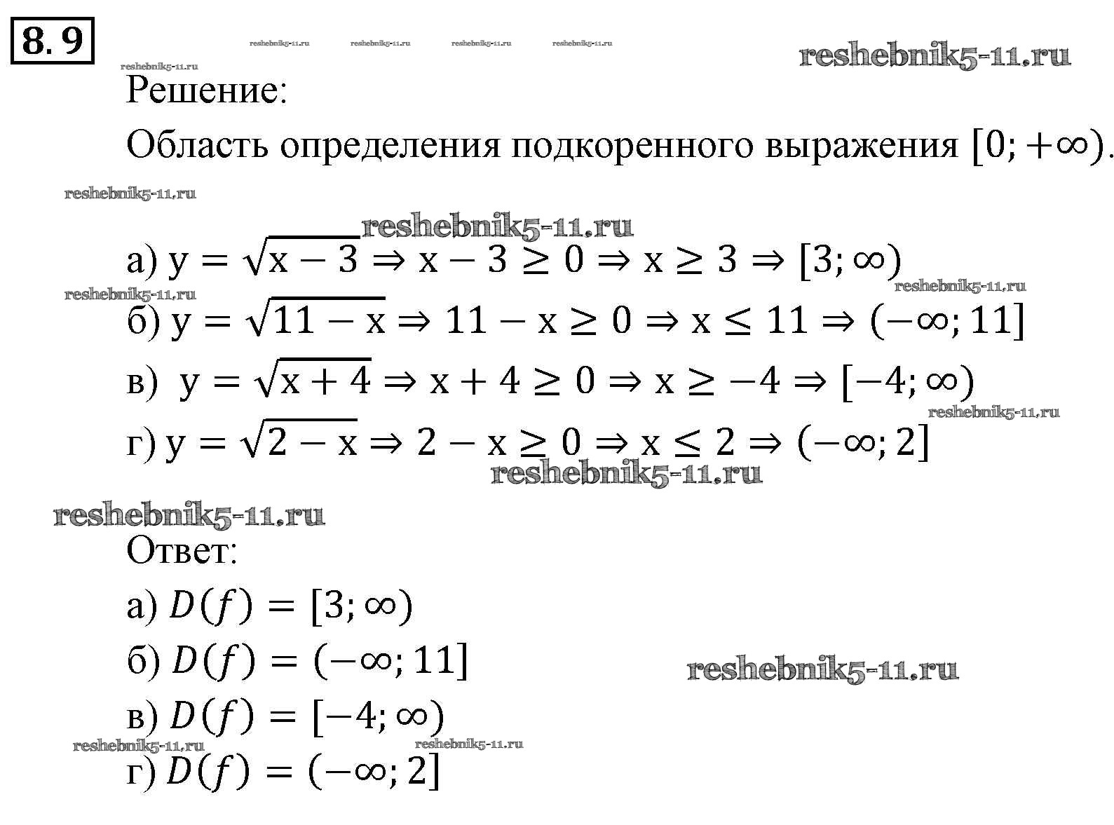 Готовая домашняя работа с ответами по Алгебре за 9 класс Мордкович, Александрова, Мишустина, Тульчинская, Семёнов Задачник Часть 2 Мнемозина 2010 ФГОС - § 8. Определение числовой функции. Область определения, область значений функции 9