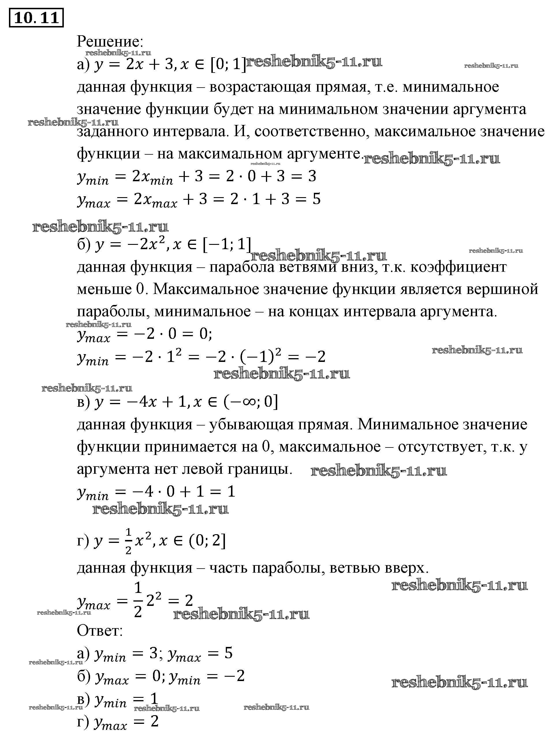 Готовая домашняя работа с ответами по Алгебре за 9 класс Мордкович, Александрова, Мишустина, Тульчинская, Семёнов Задачник Часть 2 Мнемозина 2010 ФГОС - § 10. Свойства функций 11