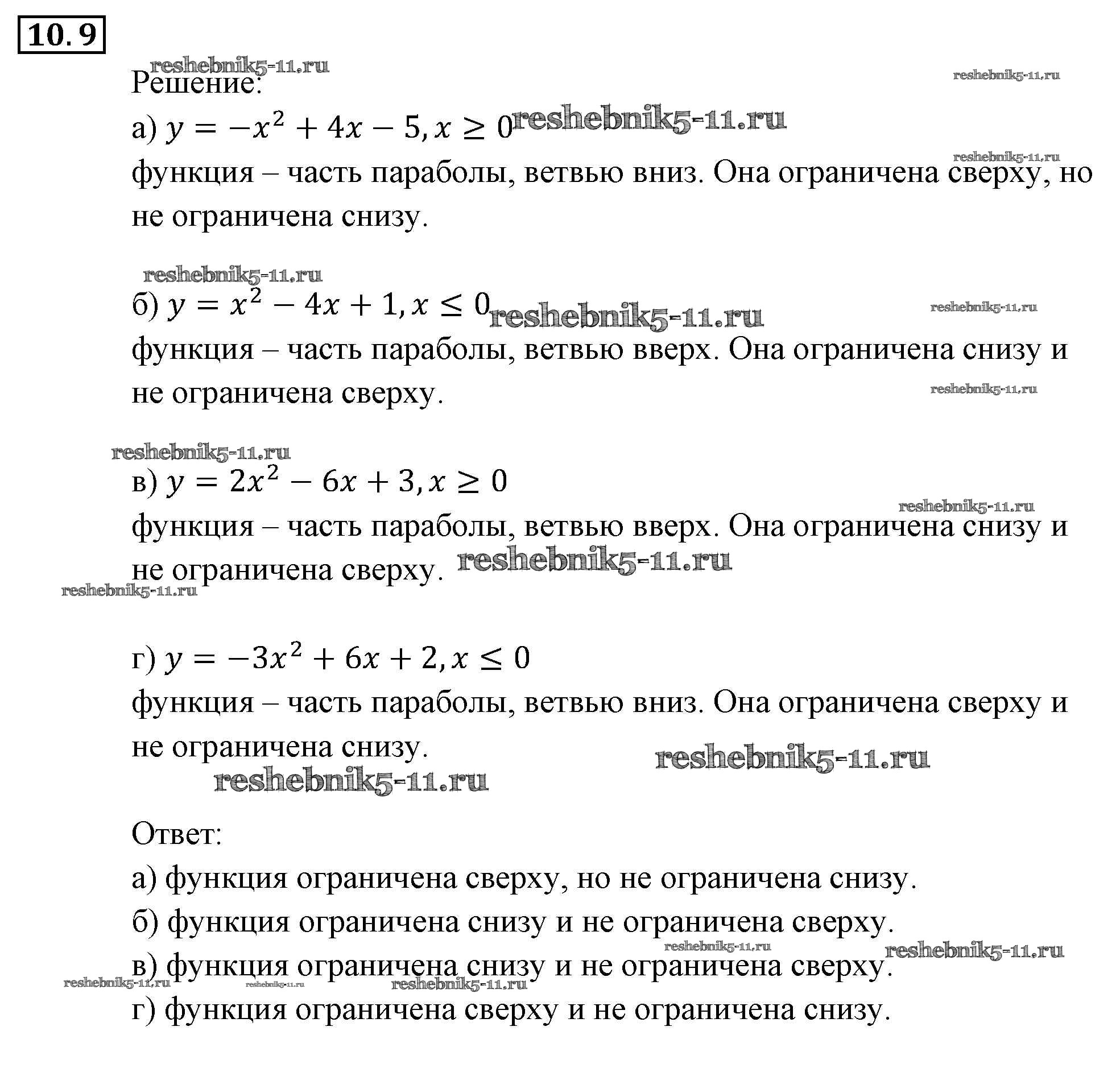 Готовая домашняя работа с ответами по Алгебре за 9 класс Мордкович, Александрова, Мишустина, Тульчинская, Семёнов Задачник Часть 2 Мнемозина 2010 ФГОС - § 10. Свойства функций 9