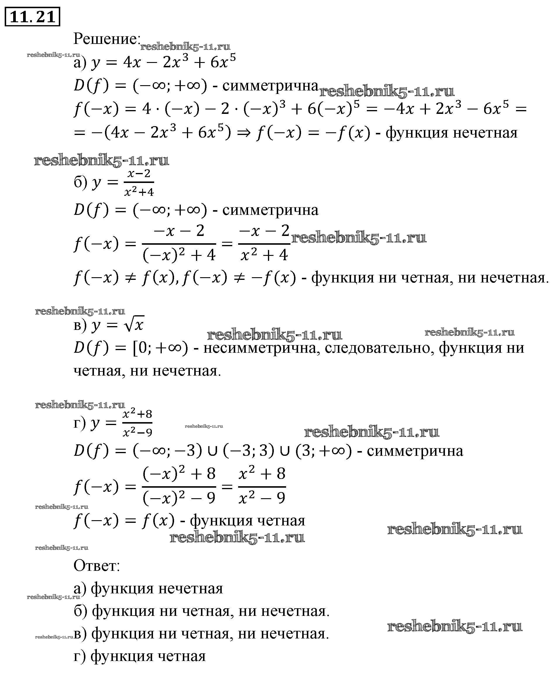 Готовая домашняя работа с ответами по Алгебре за 9 класс Мордкович, Александрова, Мишустина, Тульчинская, Семёнов Задачник Часть 2 Мнемозина 2010 ФГОС - § 11. Честные и нечестные функции 21