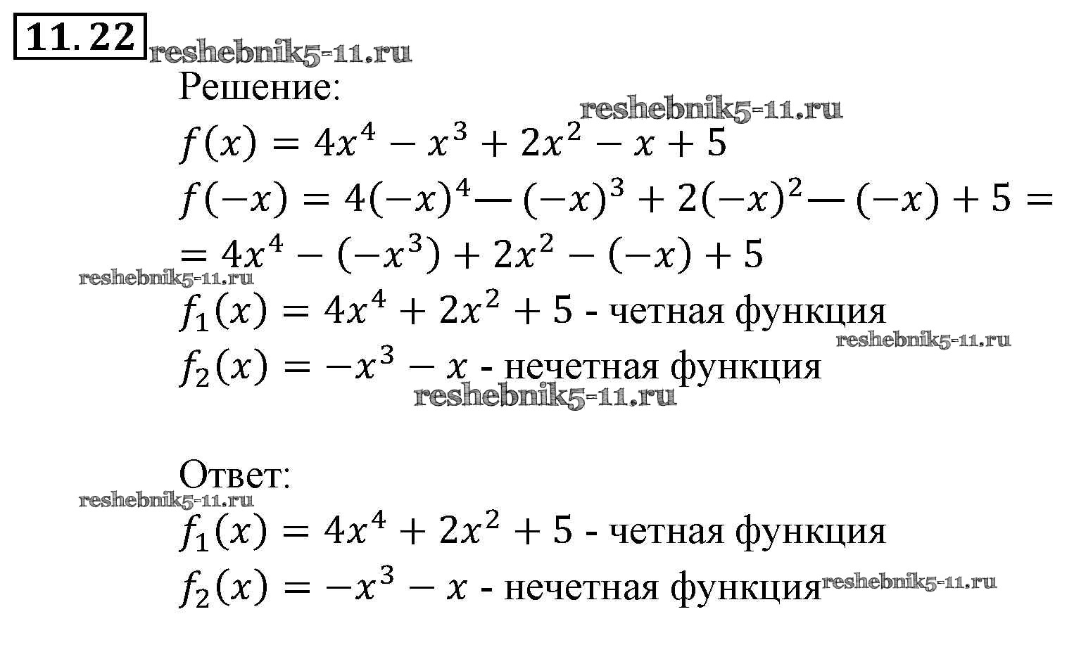 Готовая домашняя работа с ответами по Алгебре за 9 класс Мордкович, Александрова, Мишустина, Тульчинская, Семёнов Задачник Часть 2 Мнемозина 2010 ФГОС - § 11. Честные и нечестные функции 22