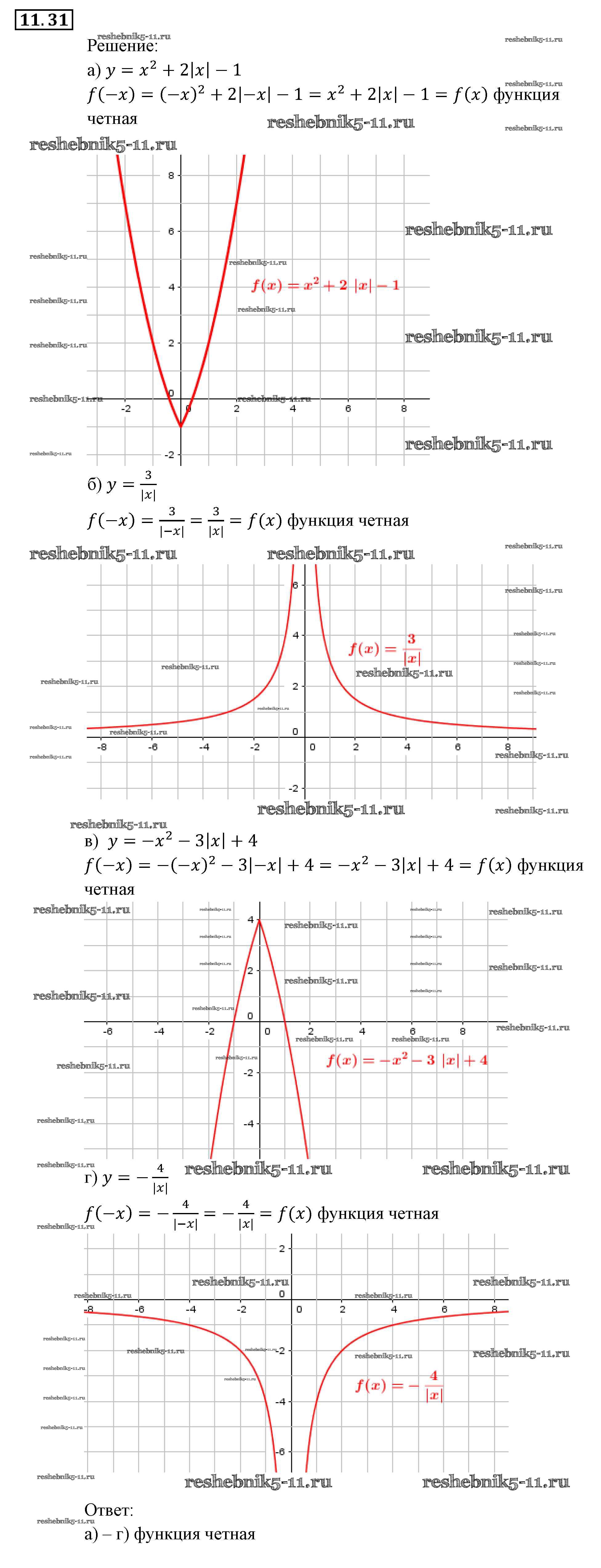 Готовая домашняя работа с ответами по Алгебре за 9 класс Мордкович, Александрова, Мишустина, Тульчинская, Семёнов Задачник Часть 2 Мнемозина 2010 ФГОС - § 11. Честные и нечестные функции 31
