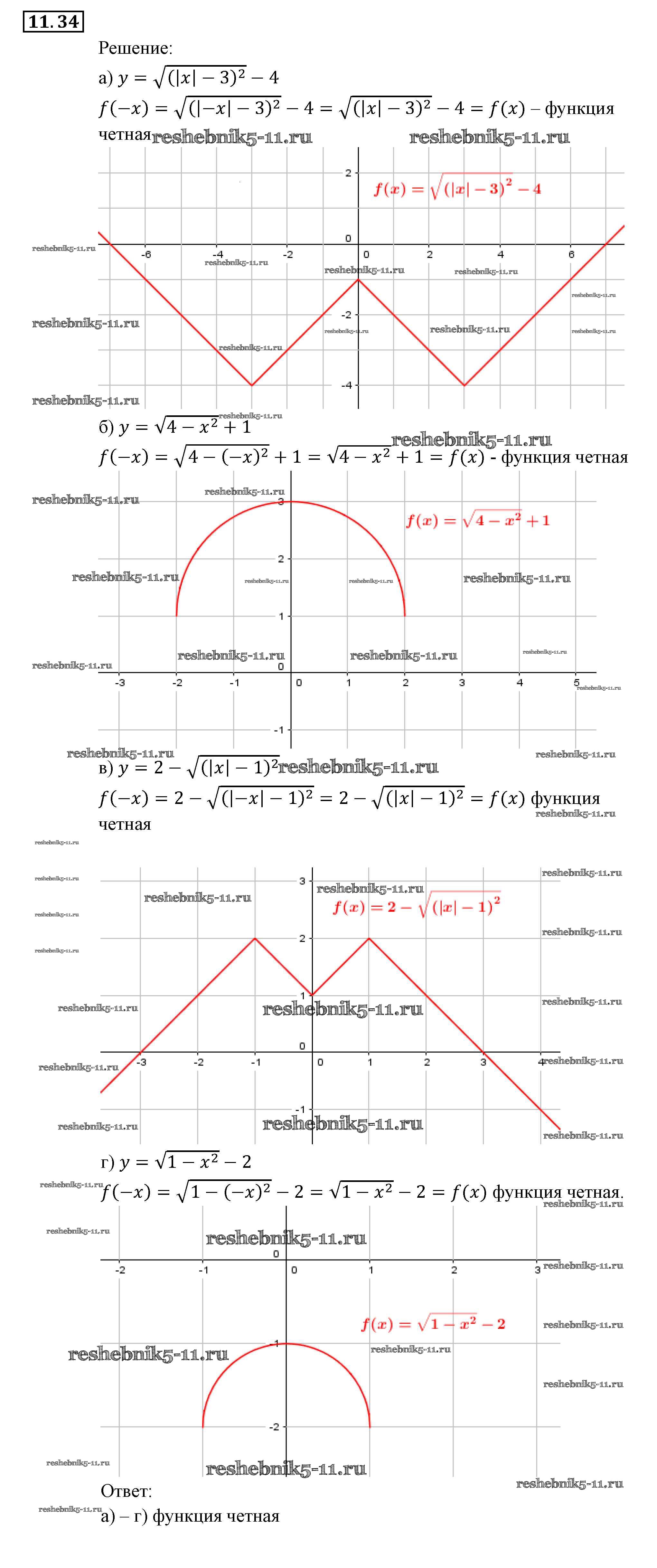Готовая домашняя работа с ответами по Алгебре за 9 класс Мордкович, Александрова, Мишустина, Тульчинская, Семёнов Задачник Часть 2 Мнемозина 2010 ФГОС - § 11. Честные и нечестные функции 34