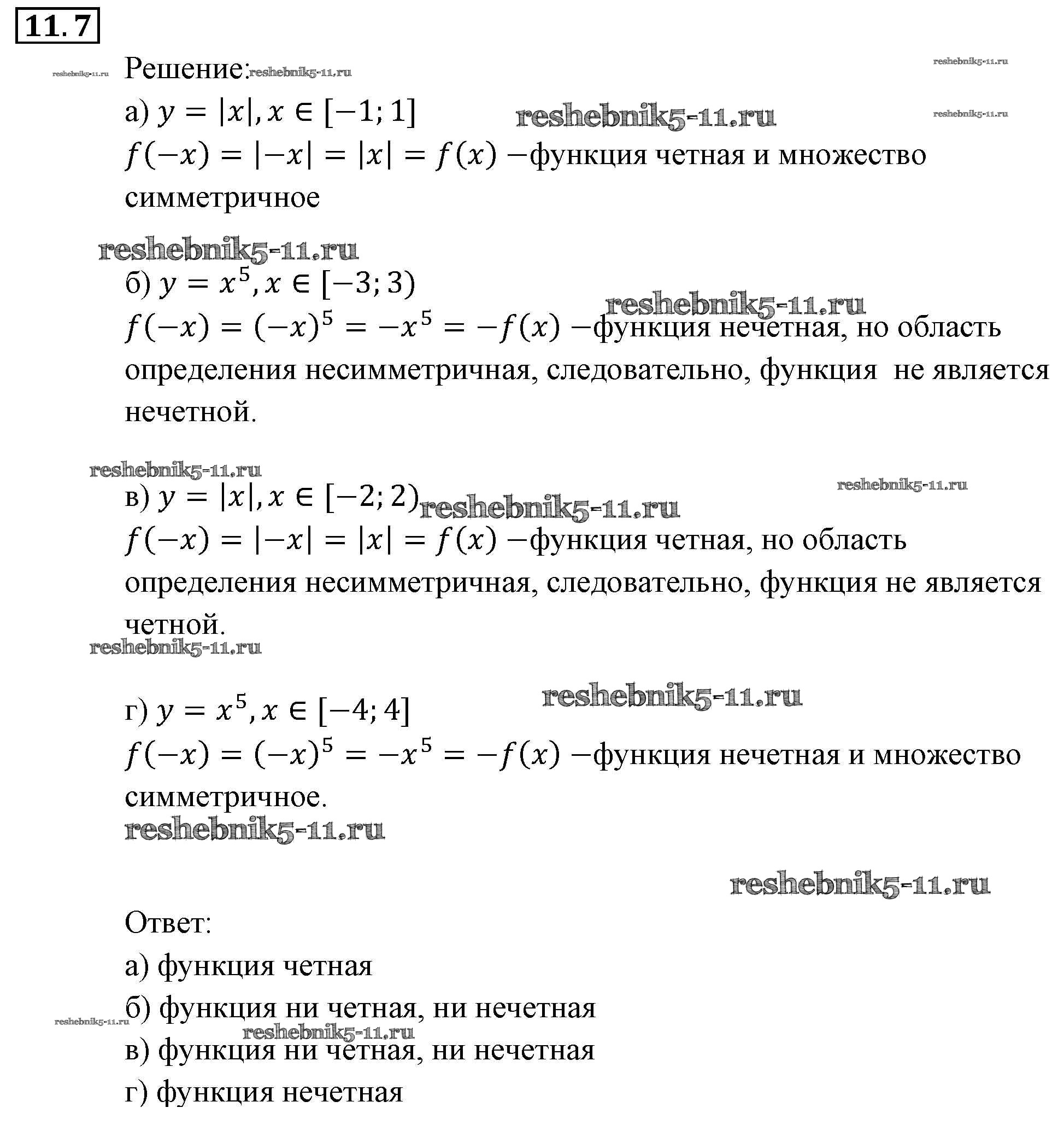 Готовая домашняя работа с ответами по Алгебре за 9 класс Мордкович, Александрова, Мишустина, Тульчинская, Семёнов Задачник Часть 2 Мнемозина 2010 ФГОС - § 11. Честные и нечестные функции 7