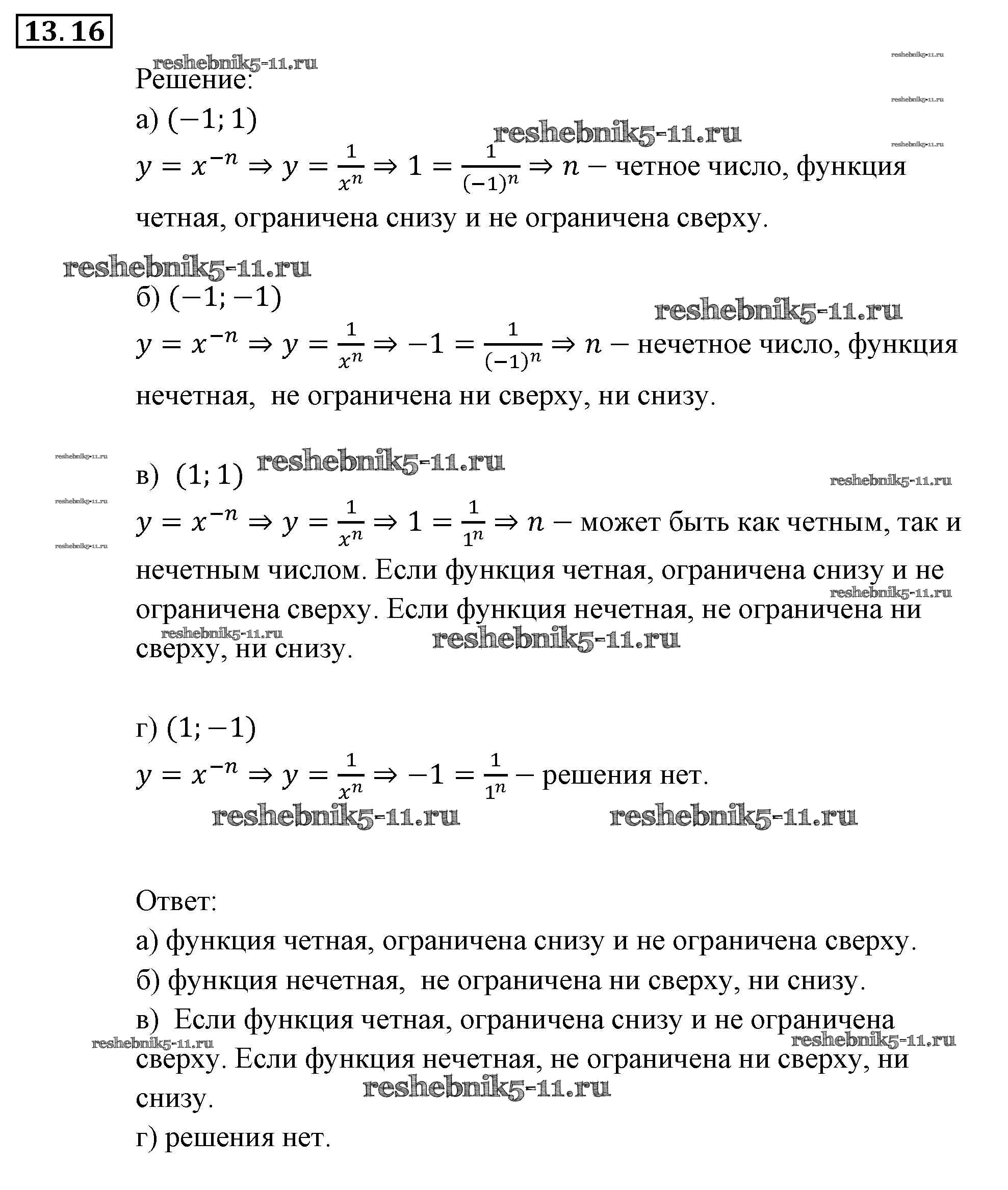 Готовая домашняя работа с ответами по Алгебре за 9 класс Мордкович, Александрова, Мишустина, Тульчинская, Семёнов Задачник Часть 2 Мнемозина 2010 ФГОС - § 13. Функции у = х~" (п е N), их свойства и графики 16