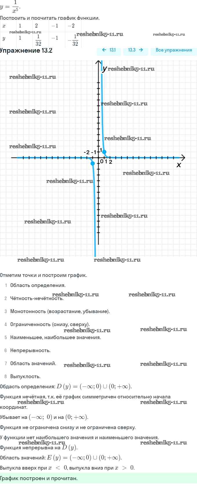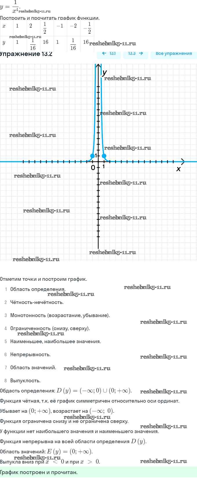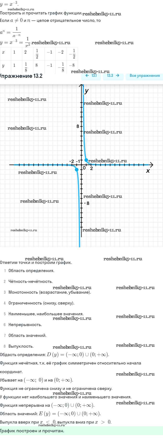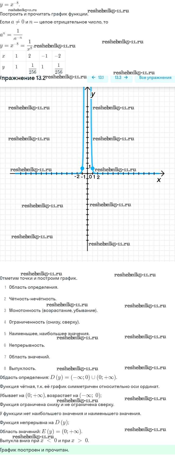 Готовая домашняя работа с ответами по Алгебре за 9 класс Мордкович, Александрова, Мишустина, Тульчинская, Семёнов Задачник Часть 2 Мнемозина 2010 ФГОС - §13. Функции y = x⁻ⁿ (n ∈ N), их свойства и графики 13.2