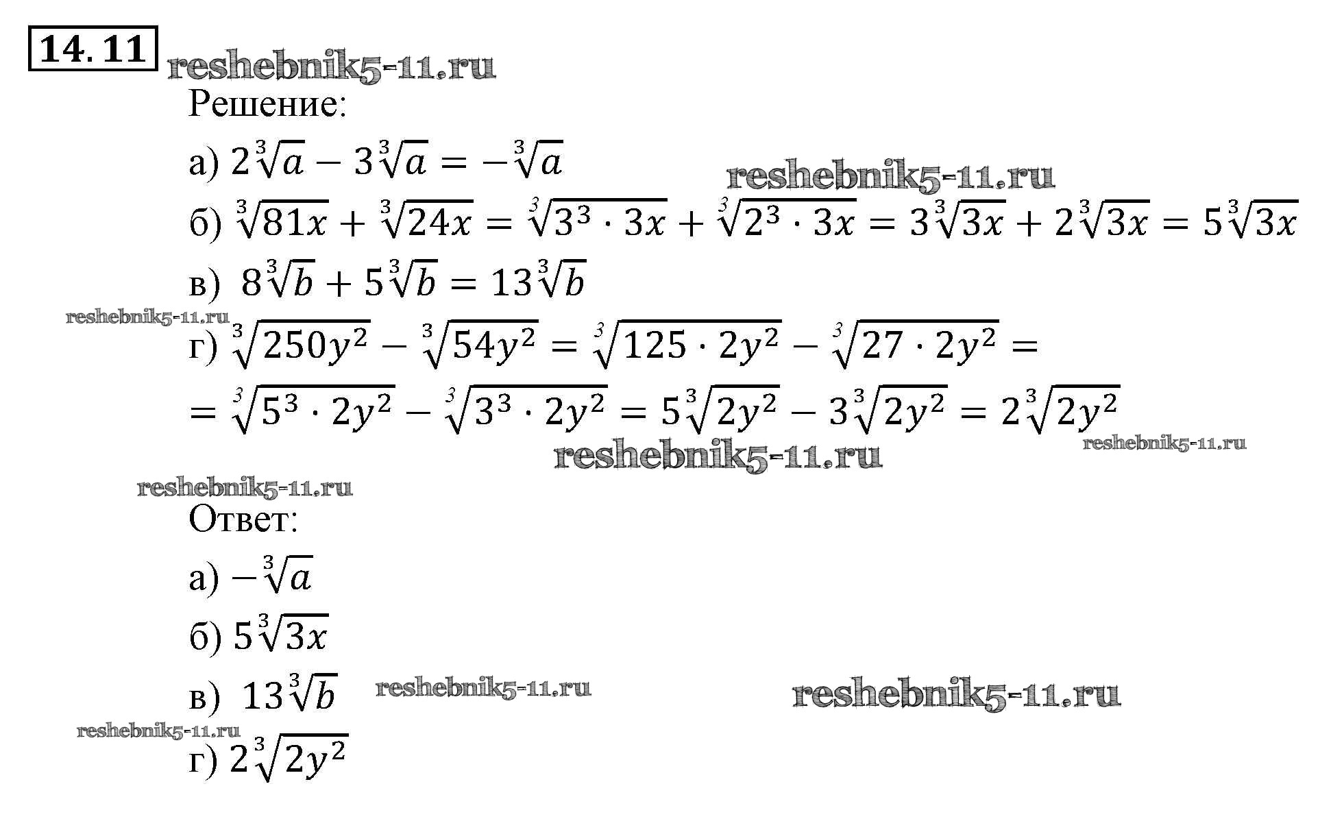 Готовая домашняя работа с ответами по Алгебре за 9 класс Мордкович, Александрова, Мишустина, Тульчинская, Семёнов Задачник Часть 2 Мнемозина 2010 ФГОС - § 14. Функция у = 3√х, ее свойства и график 11