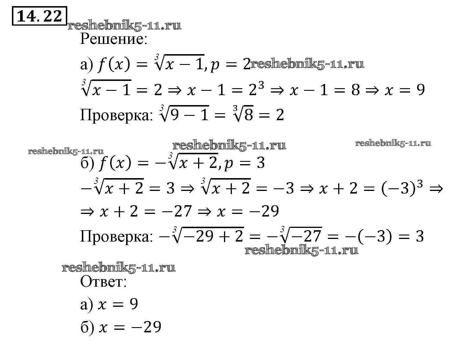 Готовая домашняя работа с ответами по Алгебре за 9 класс Мордкович, Александрова, Мишустина, Тульчинская, Семёнов Задачник Часть 2 Мнемозина 2010 ФГОС - § 14. Функция у = 3√х, ее свойства и график 22