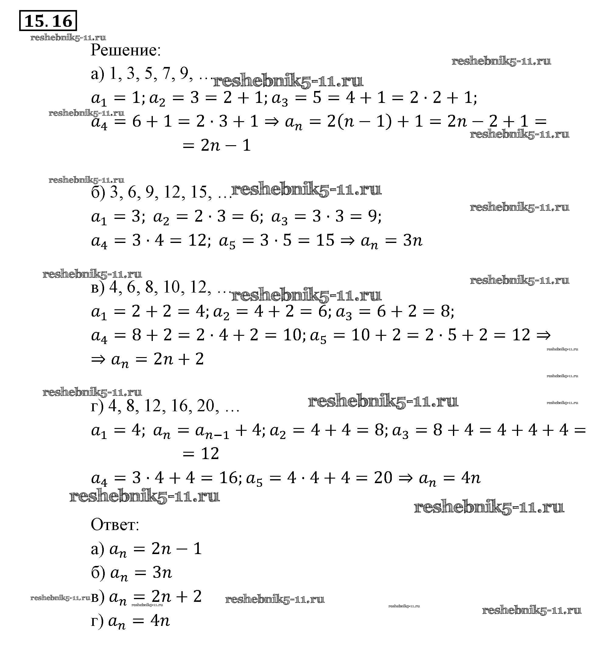 Готовая домашняя работа с ответами по Алгебре за 9 класс Мордкович, Александрова, Мишустина, Тульчинская, Семёнов Задачник Часть 2 Мнемозина 2010 ФГОС - § 15. Числовые последовательности 16