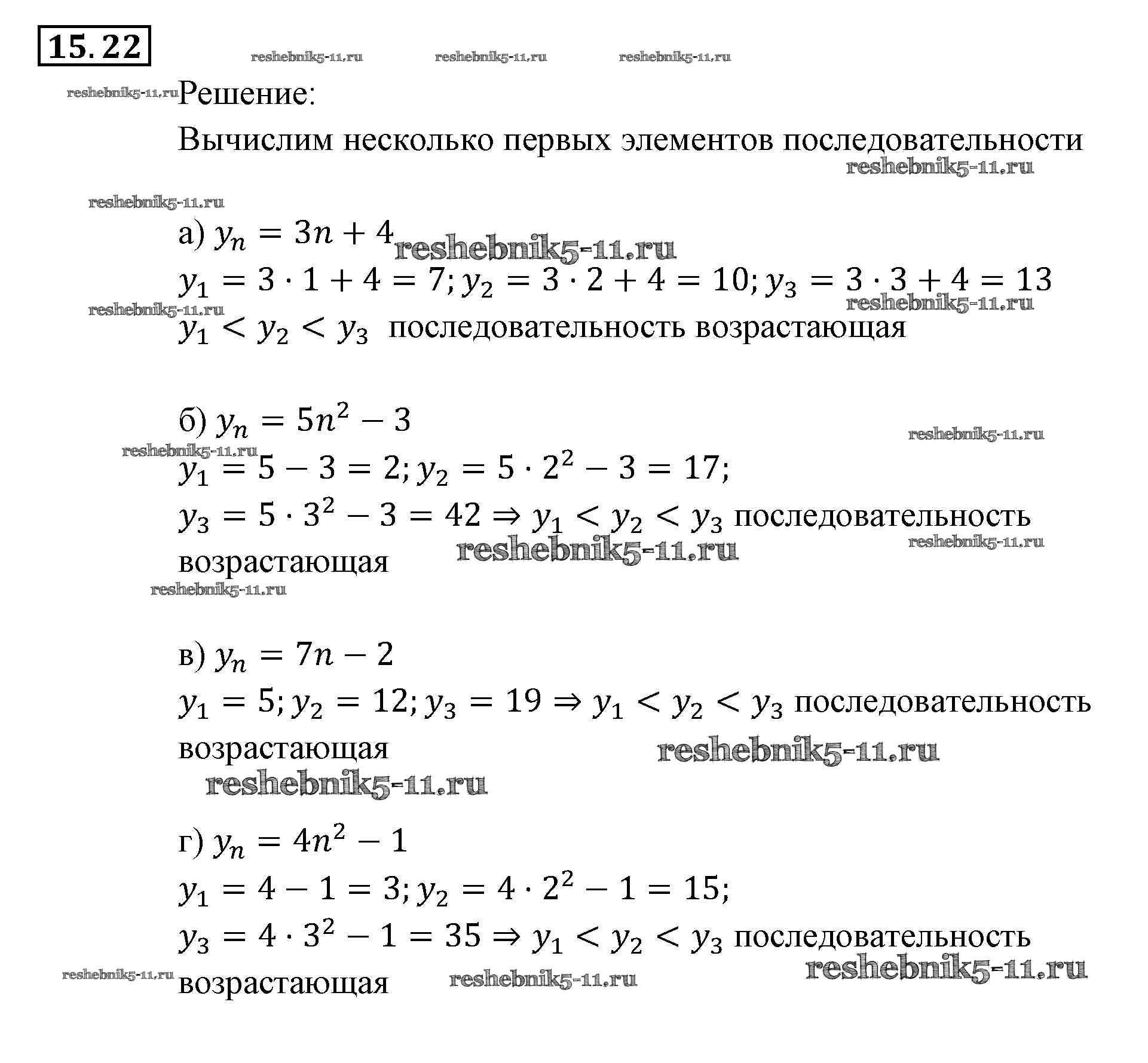 Готовая домашняя работа с ответами по Алгебре за 9 класс Мордкович, Александрова, Мишустина, Тульчинская, Семёнов Задачник Часть 2 Мнемозина 2010 ФГОС - § 15. Числовые последовательности 22