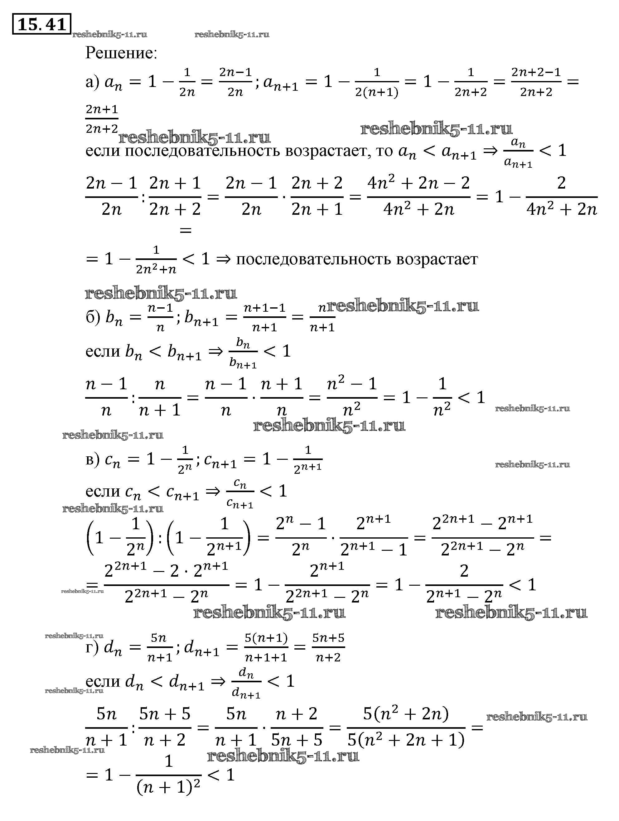 Готовая домашняя работа с ответами по Алгебре за 9 класс Мордкович, Александрова, Мишустина, Тульчинская, Семёнов Задачник Часть 2 Мнемозина 2010 ФГОС - § 15. Числовые последовательности 41