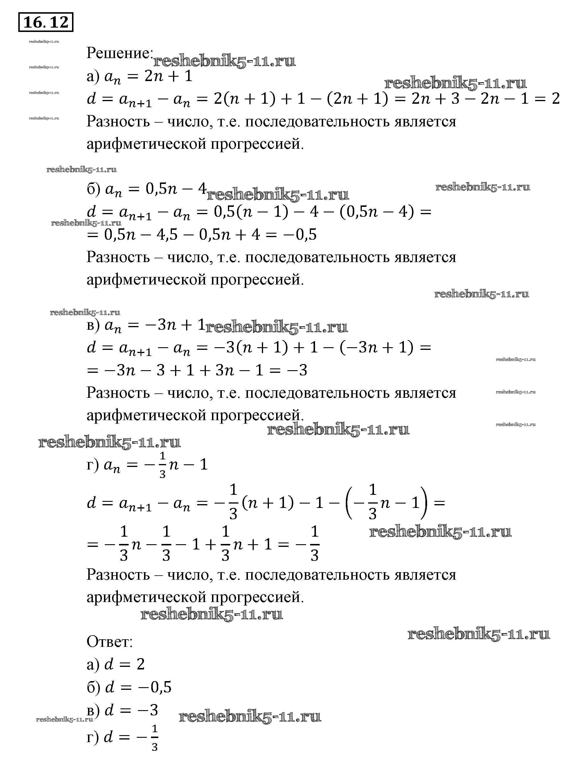 Готовая домашняя работа с ответами по Алгебре за 9 класс Мордкович, Александрова, Мишустина, Тульчинская, Семёнов Задачник Часть 2 Мнемозина 2010 ФГОС - § 16. Арифметическая прогрессия 12