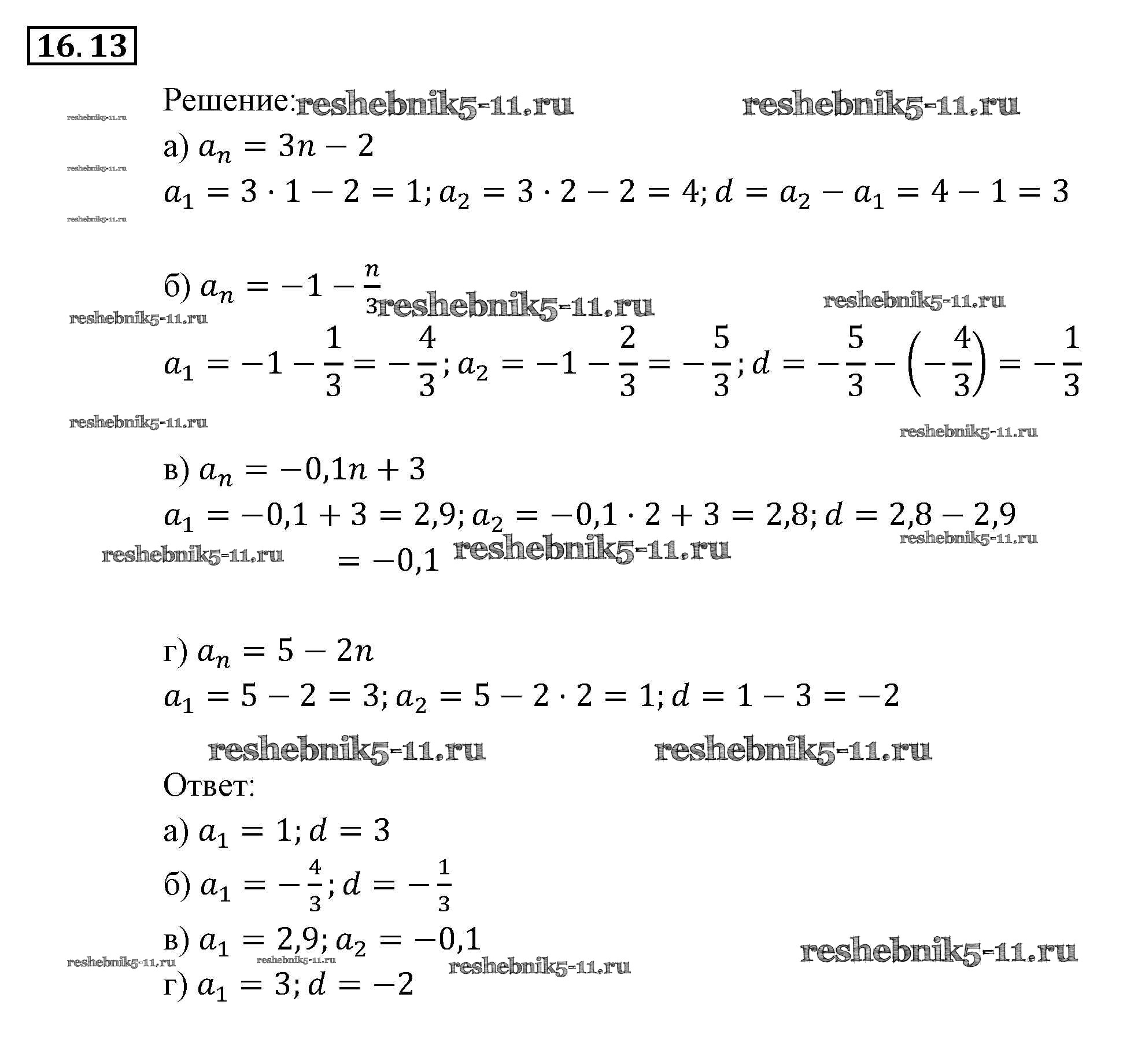 Готовая домашняя работа с ответами по Алгебре за 9 класс Мордкович, Александрова, Мишустина, Тульчинская, Семёнов Задачник Часть 2 Мнемозина 2010 ФГОС - § 16. Арифметическая прогрессия 13