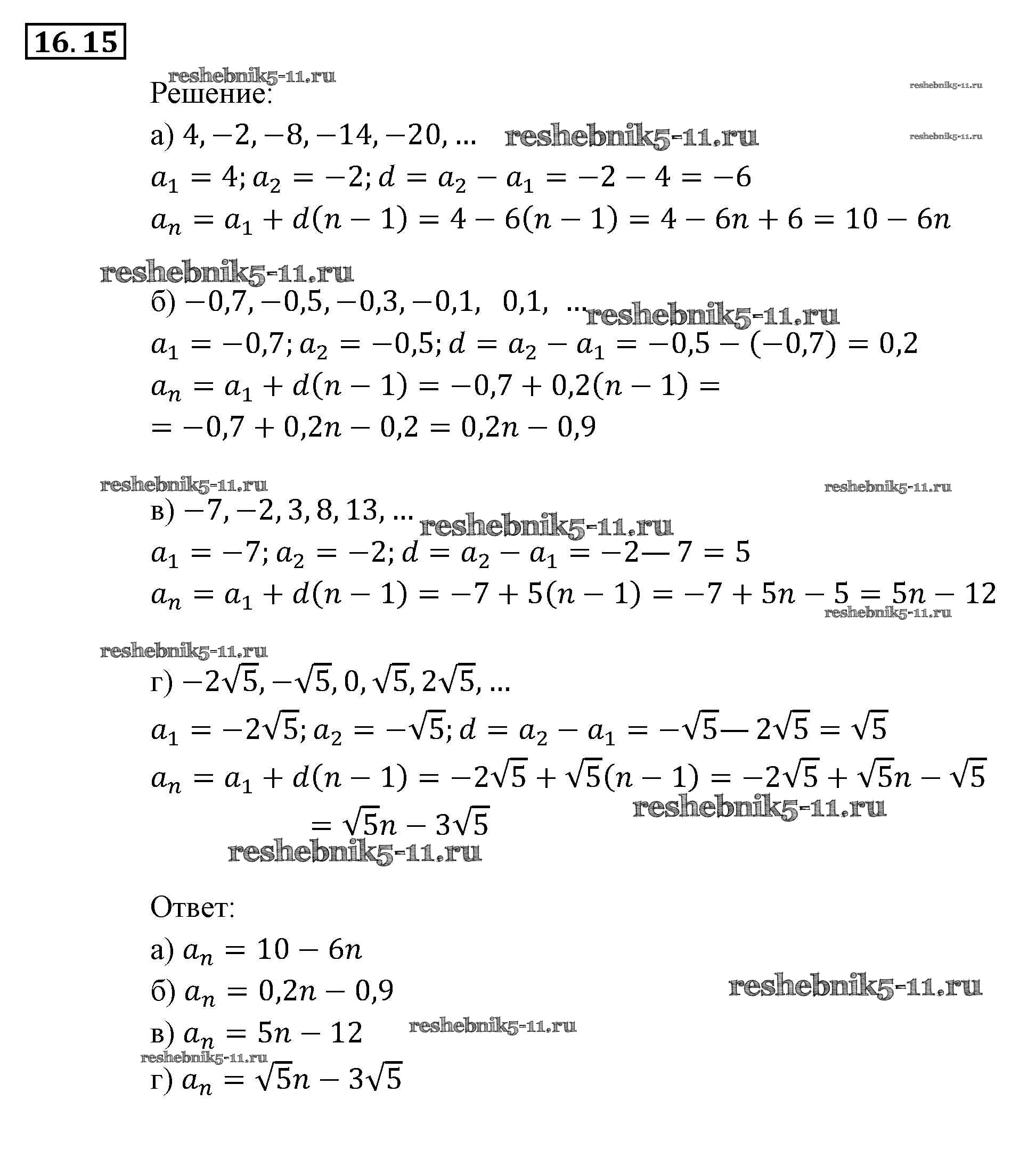 Готовая домашняя работа с ответами по Алгебре за 9 класс Мордкович, Александрова, Мишустина, Тульчинская, Семёнов Задачник Часть 2 Мнемозина 2010 ФГОС - § 16. Арифметическая прогрессия 15