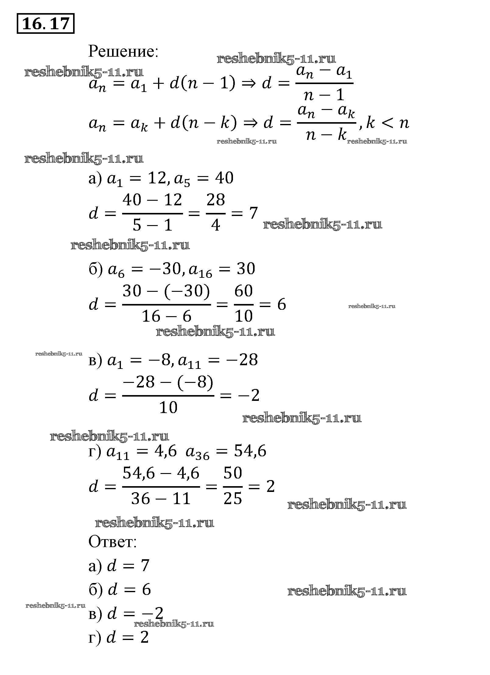 Готовая домашняя работа с ответами по Алгебре за 9 класс Мордкович, Александрова, Мишустина, Тульчинская, Семёнов Задачник Часть 2 Мнемозина 2010 ФГОС - § 16. Арифметическая прогрессия 17