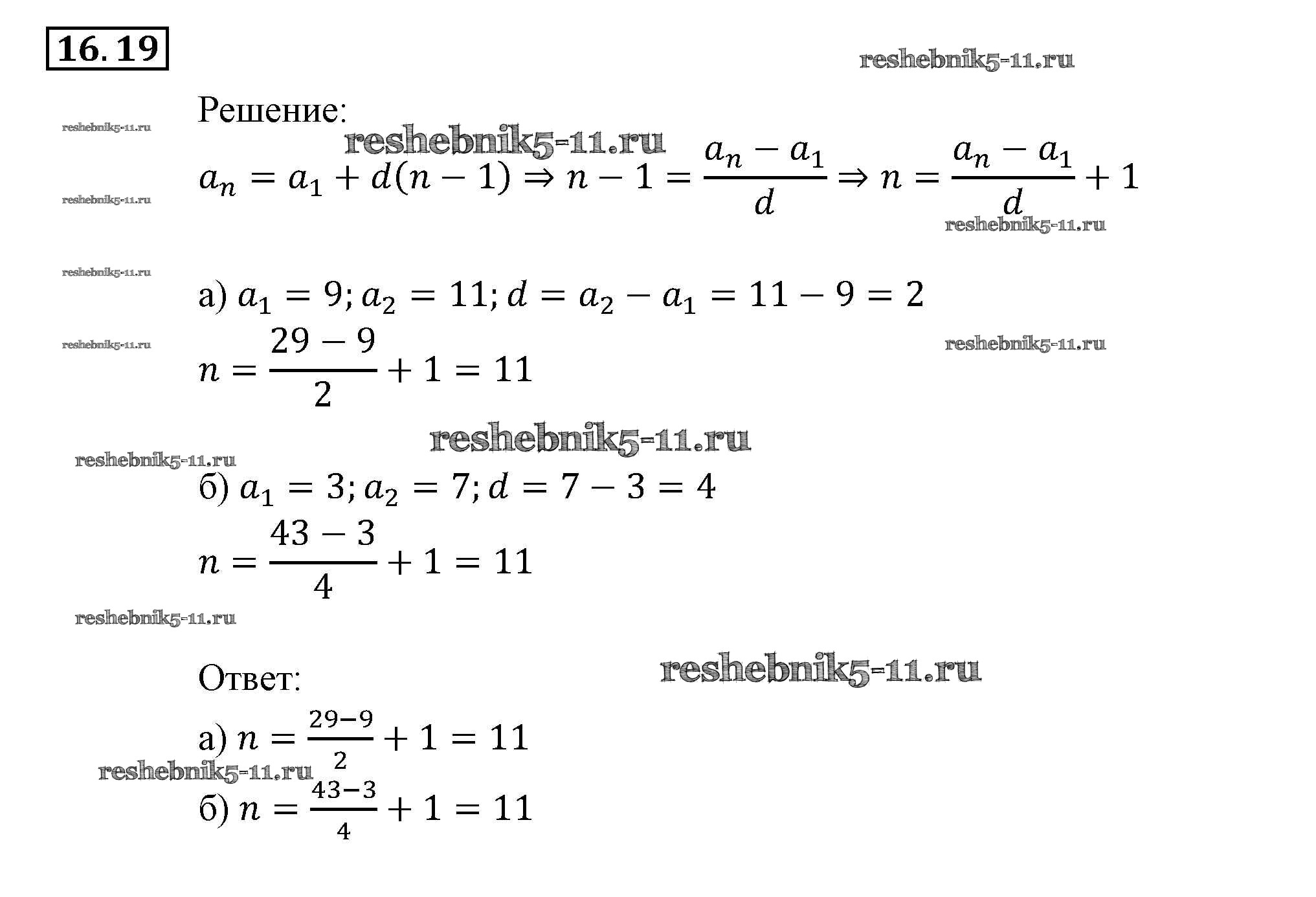 Готовая домашняя работа с ответами по Алгебре за 9 класс Мордкович, Александрова, Мишустина, Тульчинская, Семёнов Задачник Часть 2 Мнемозина 2010 ФГОС - § 16. Арифметическая прогрессия 19