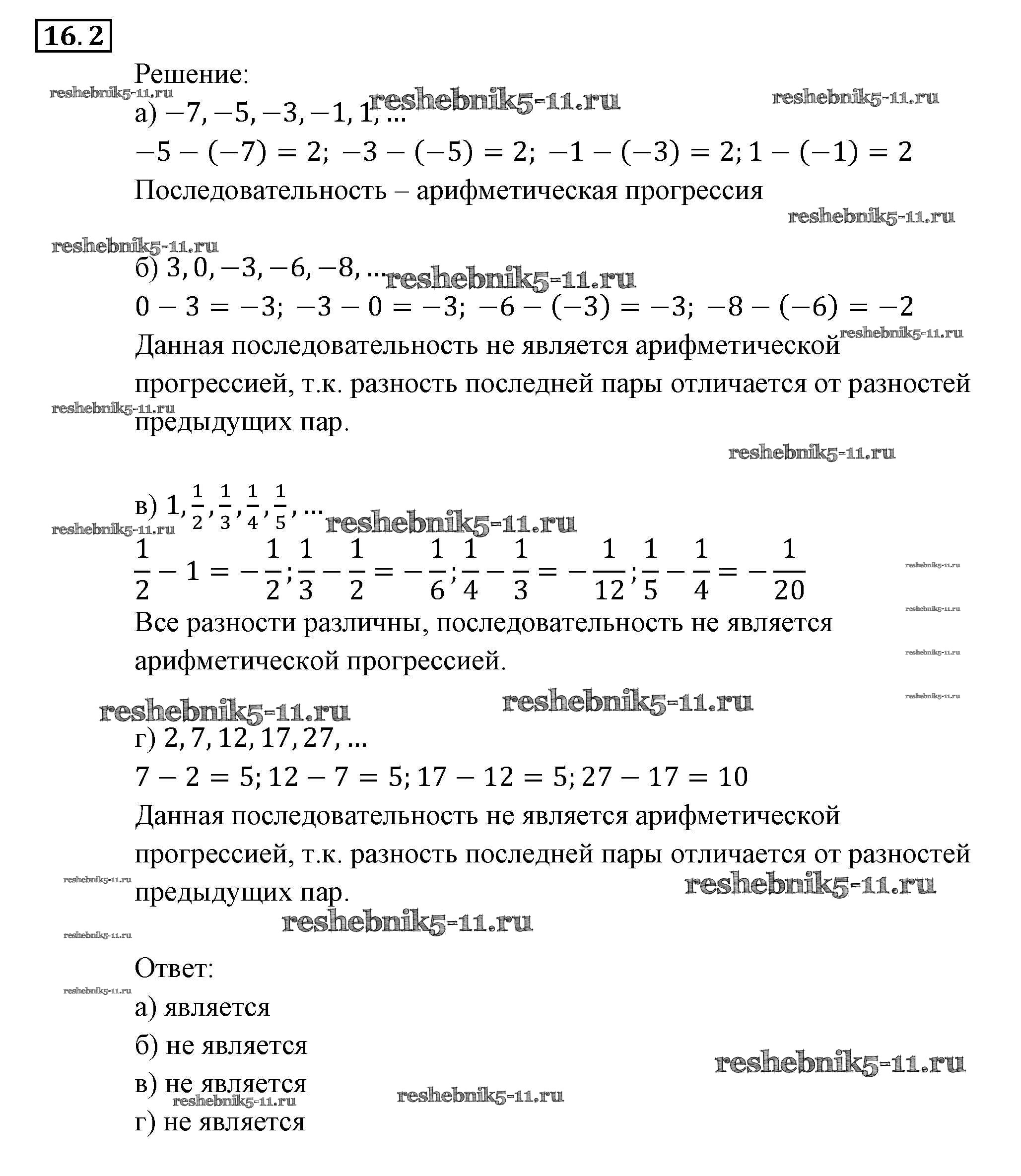 Готовая домашняя работа с ответами по Алгебре за 9 класс Мордкович, Александрова, Мишустина, Тульчинская, Семёнов Задачник Часть 2 Мнемозина 2010 ФГОС - § 16. Арифметическая прогрессия 2