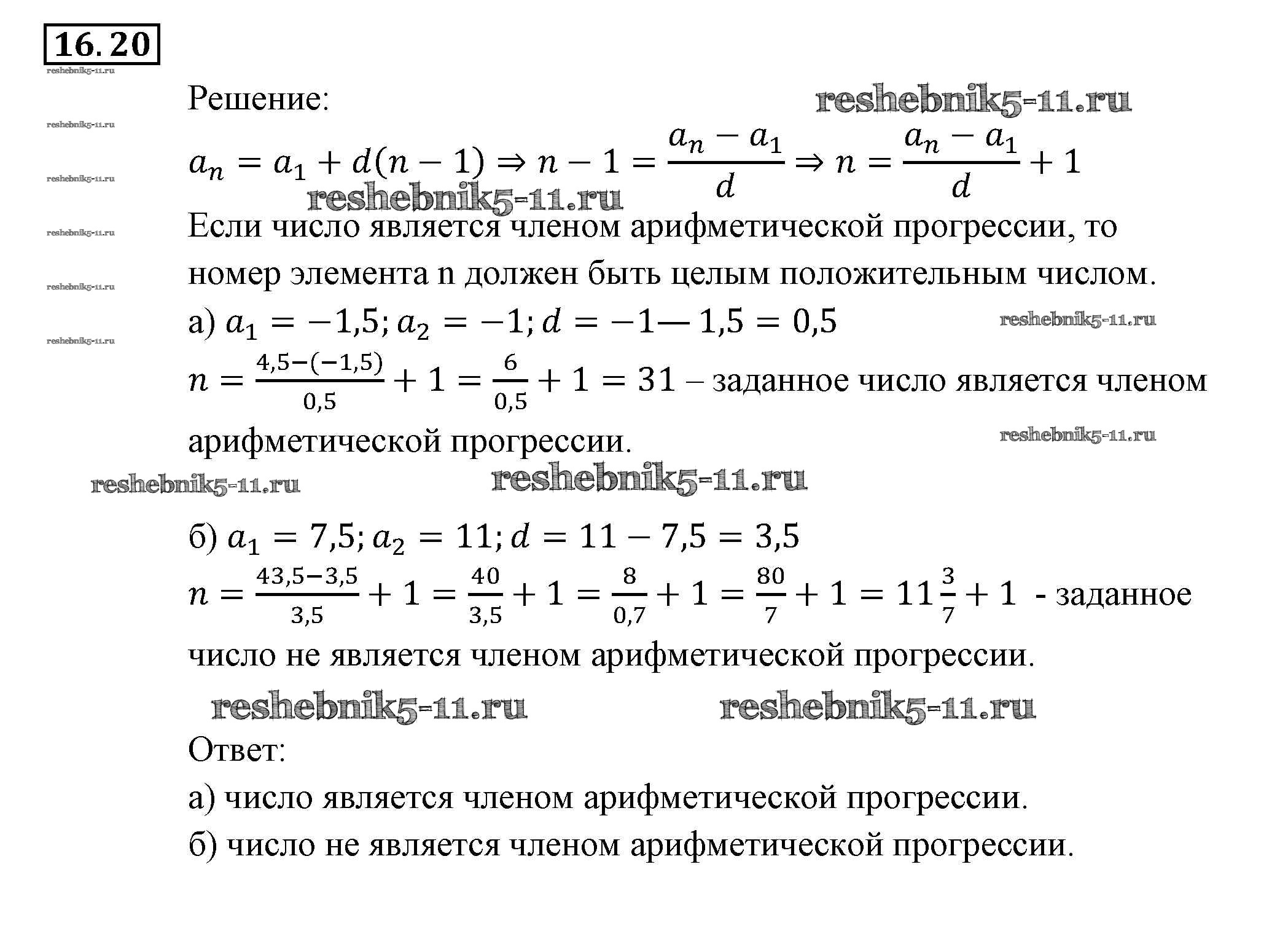 Готовая домашняя работа с ответами по Алгебре за 9 класс Мордкович, Александрова, Мишустина, Тульчинская, Семёнов Задачник Часть 2 Мнемозина 2010 ФГОС - § 16. Арифметическая прогрессия 20