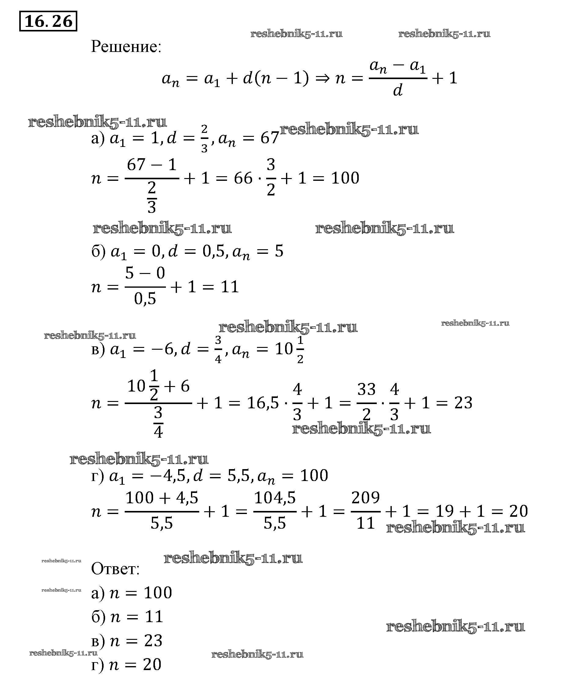 Готовая домашняя работа с ответами по Алгебре за 9 класс Мордкович, Александрова, Мишустина, Тульчинская, Семёнов Задачник Часть 2 Мнемозина 2010 ФГОС - § 16. Арифметическая прогрессия 26